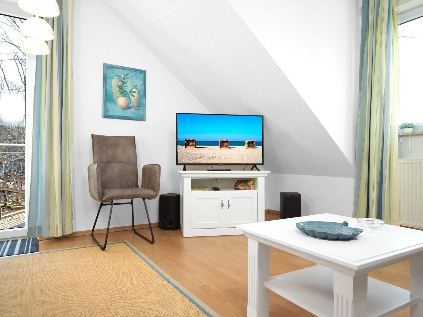 Das Appartement "Südwind" befindet sich im 2. OG und liegt direkt am Strand vom Schwarzen Busch. Es bietet eine Größe von 60m² und ist für bis zu 4 Personen geeignet. Das Appartement verfügt über ein Schlafzimmer mit einem Doppelbett und ein weiteres Schlafzimmer mit einem Etagenbett. Das Bad ist mit einer Dusche und WC ausgestattet. Ein Süd-Balkon ist ebenfalls vorhanden, auf dem Sie die Sonne genießen können. Ein kostenloser Internetanschluss steht Ihnen zur Verfügung, damit Sie jederzeit online sein können.