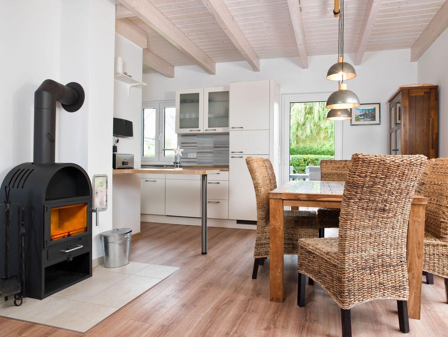 Der große Wohnbereich mit einem schönen Essplatz mit Blick ins Grüne und mit offener Einbauküche macht Ihren Urlaub zu etwas Besonderem.