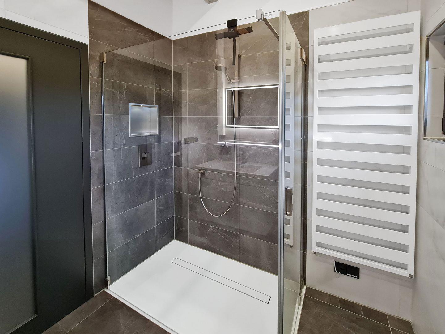 Auf der Auffahrt können bis zu zwei Autos hintereinander parken. Weiterhin ist eine Ladestation für E-Fahrzeuge vorhanden.