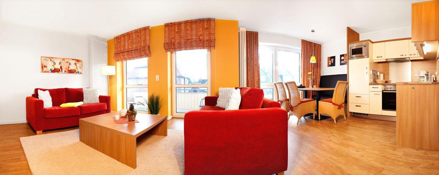 Diese Luxus-Ferienwohnung über 2 Ebenen mit ca. 56 m² im 1. OG (mit Fahrstuhl) im Haus "Südwester" besticht durch ihre Ausstattung und Superlage direkt am Timmendorfer Hafen.