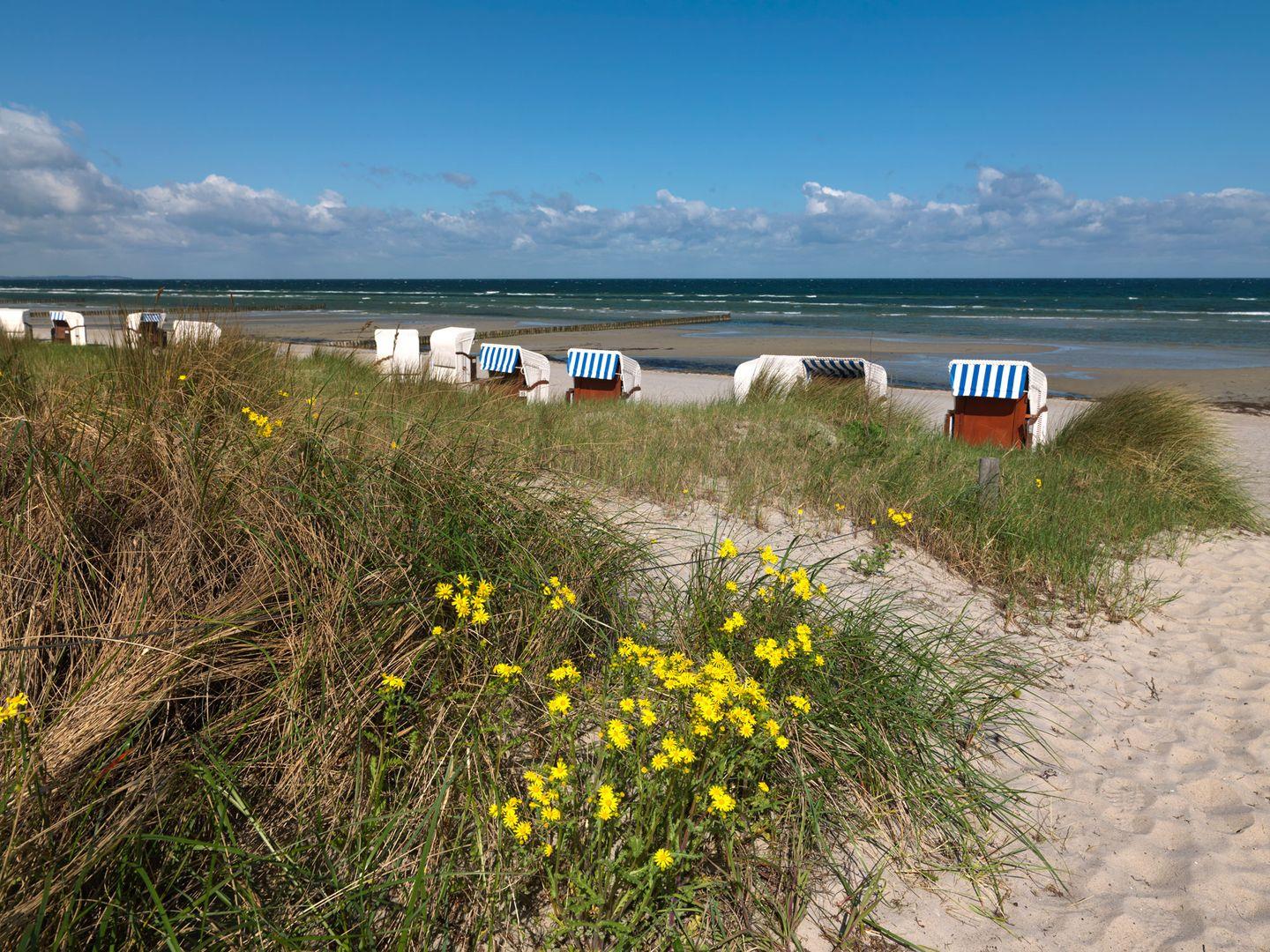 Direkt vor dem Hafen von Timmendorf, nur wenige Schritte vom Meer und Strand entfernt. An der belebten Hafenpromenade (Festplatz).