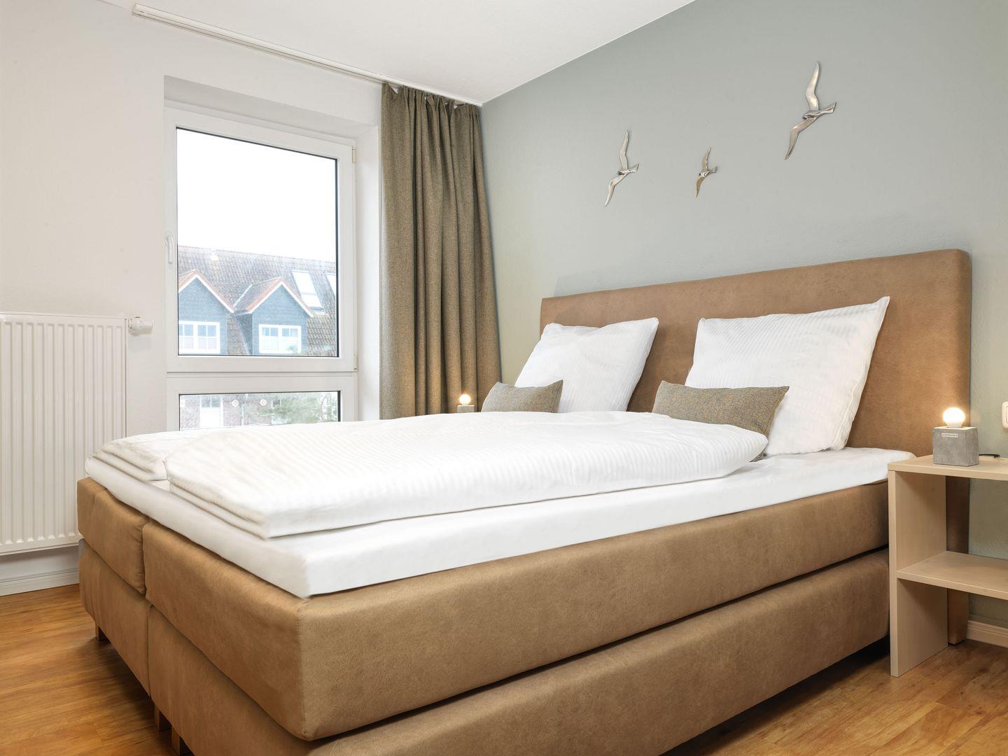 Zwei geräumige Schlafzimmer mit Doppelbetten sowie ein großzügiges Bad mit Sauna und ein Gäste-WC lassen bis zu 6 Personen einen entspannten Urlaub verleben.