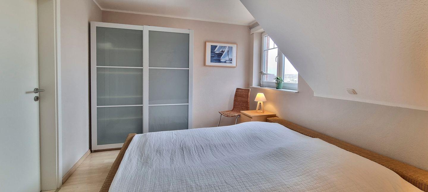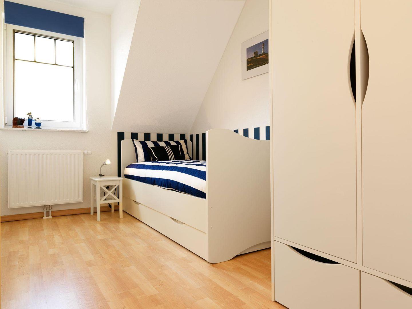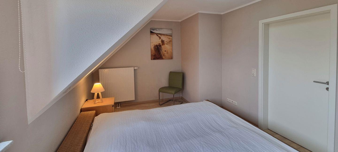 Im Obergeschoss erwarten Sie ein Badezimmer mit Dusche/WC und Doppelwaschbecken, zwei Schlafzimmer mit ausziehbaren Einzelbetten sowie ein Schlafzimmer mit einem Doppelbett für insgesamt 6 Personen.