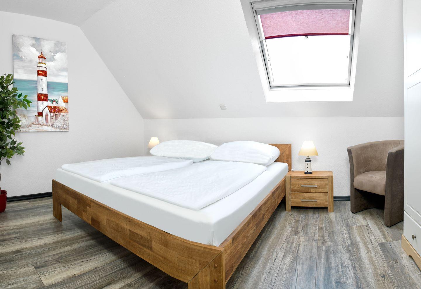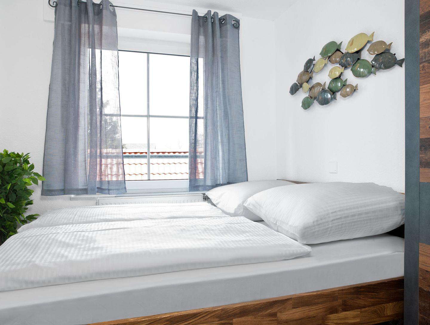 Das Schlafzimmer mit Doppelbett und ein weiteres Zimmer mit einem Doppelbett bieten 4 Personen Platz für eine entspannte Nachtruhe.