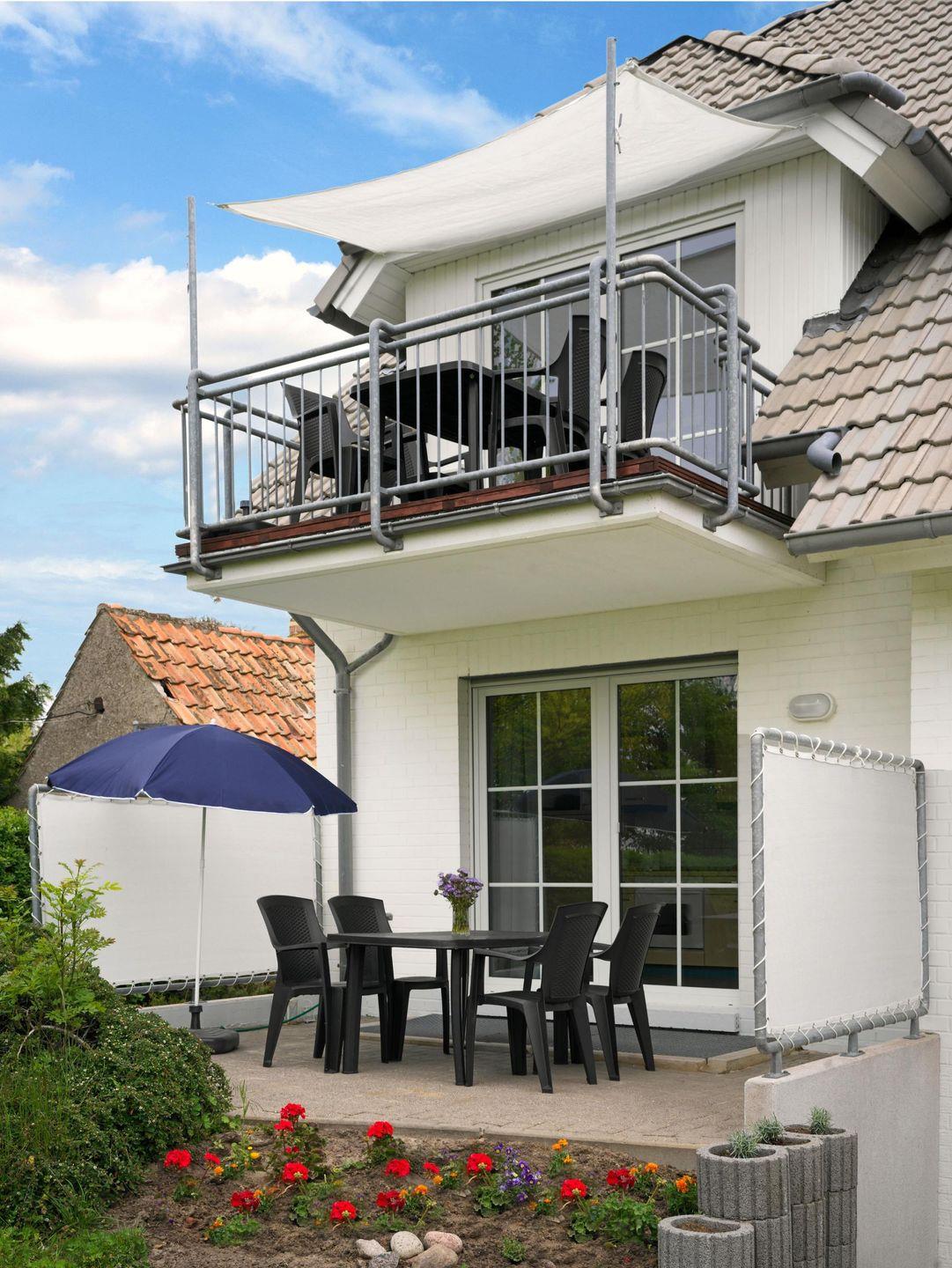 Vom Wohnzimmer mit Essbereich gelangen Sie auf den sonnigen Balkon mit Gartenmöbeln und einem hochwertigen Napoleon Elektrogrill.
