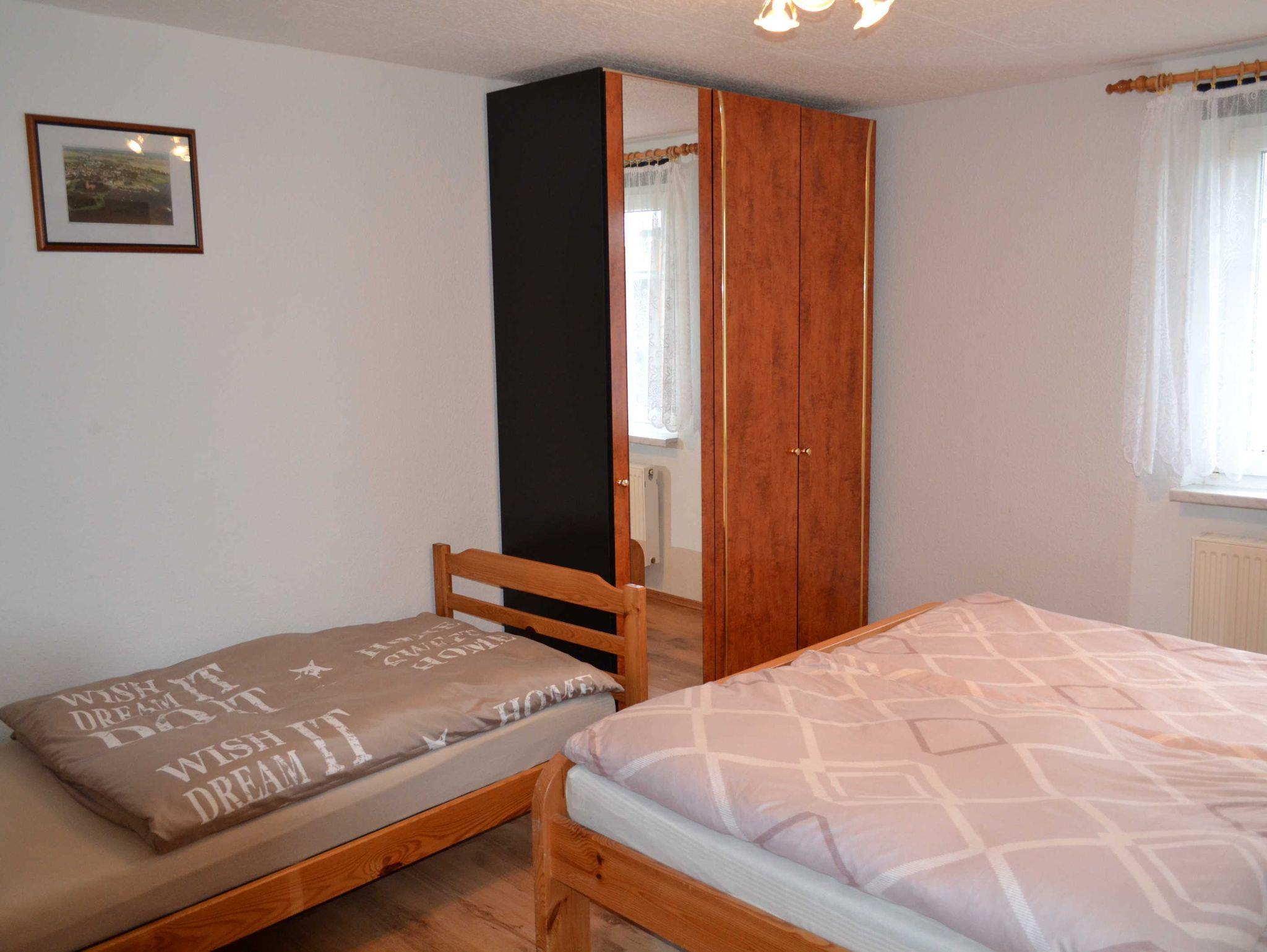 • Schlafzimmer mit Doppelbett und einem Einzelbett