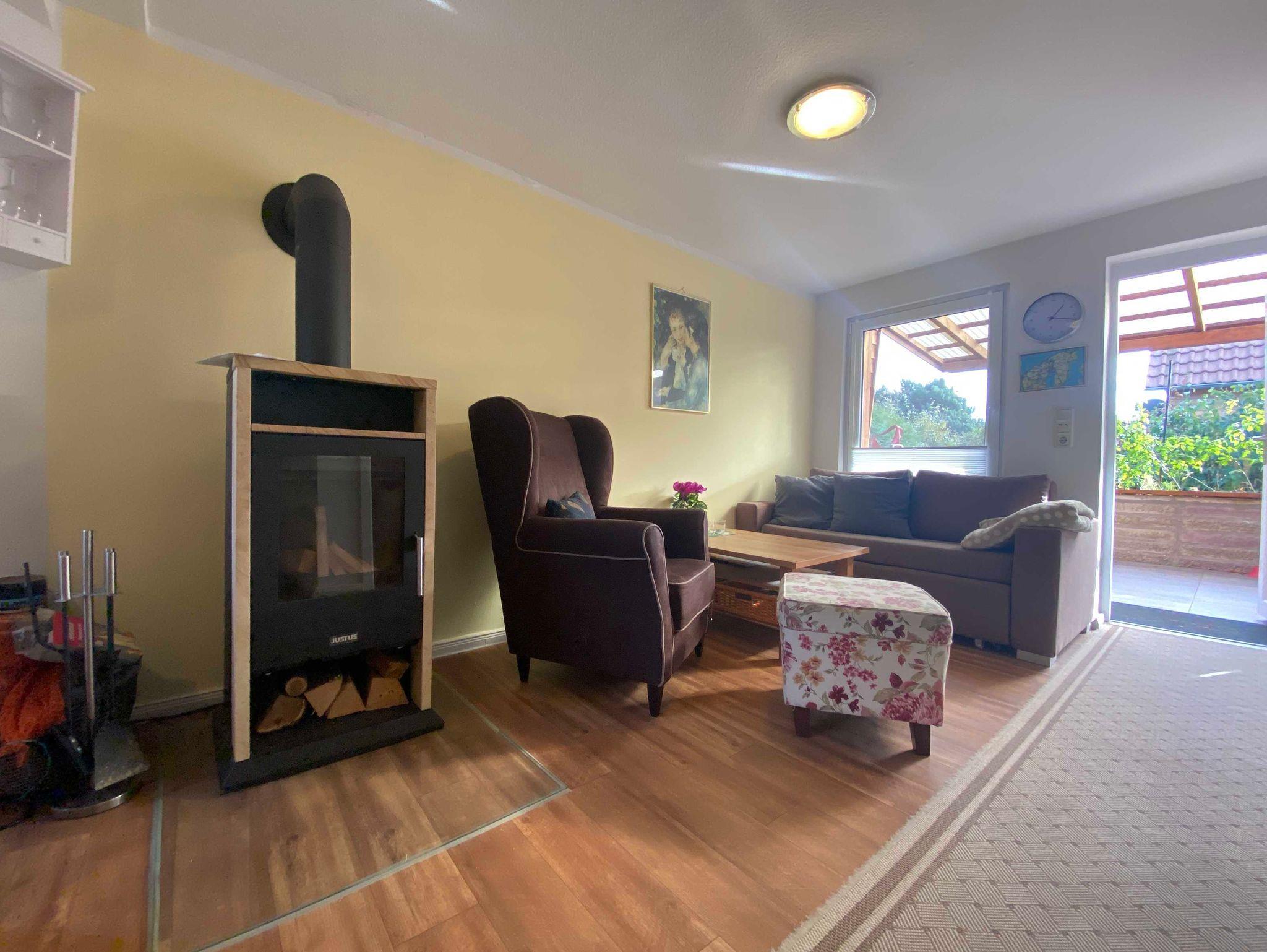 Unser Häuschen ist mit allem sehr wohnlich ausgestattet, was Sie für Ihre Urlaubstage benötigen. Der gemütliche Kamin und die Fußbodenheizung sorgen auch an kühleren Tagen für warme Behaglichkeit. Besonders stolz sind wir auf unsere große, überdachte Terrasse Sie werden sich bei uns wohl fühlen! Da der Garten rundum eingezäunt ist, sind Haustiere bei uns auch herzlich willkommen! Auf der Terrasse und im Garten kann selbstverständlich geraucht werden!