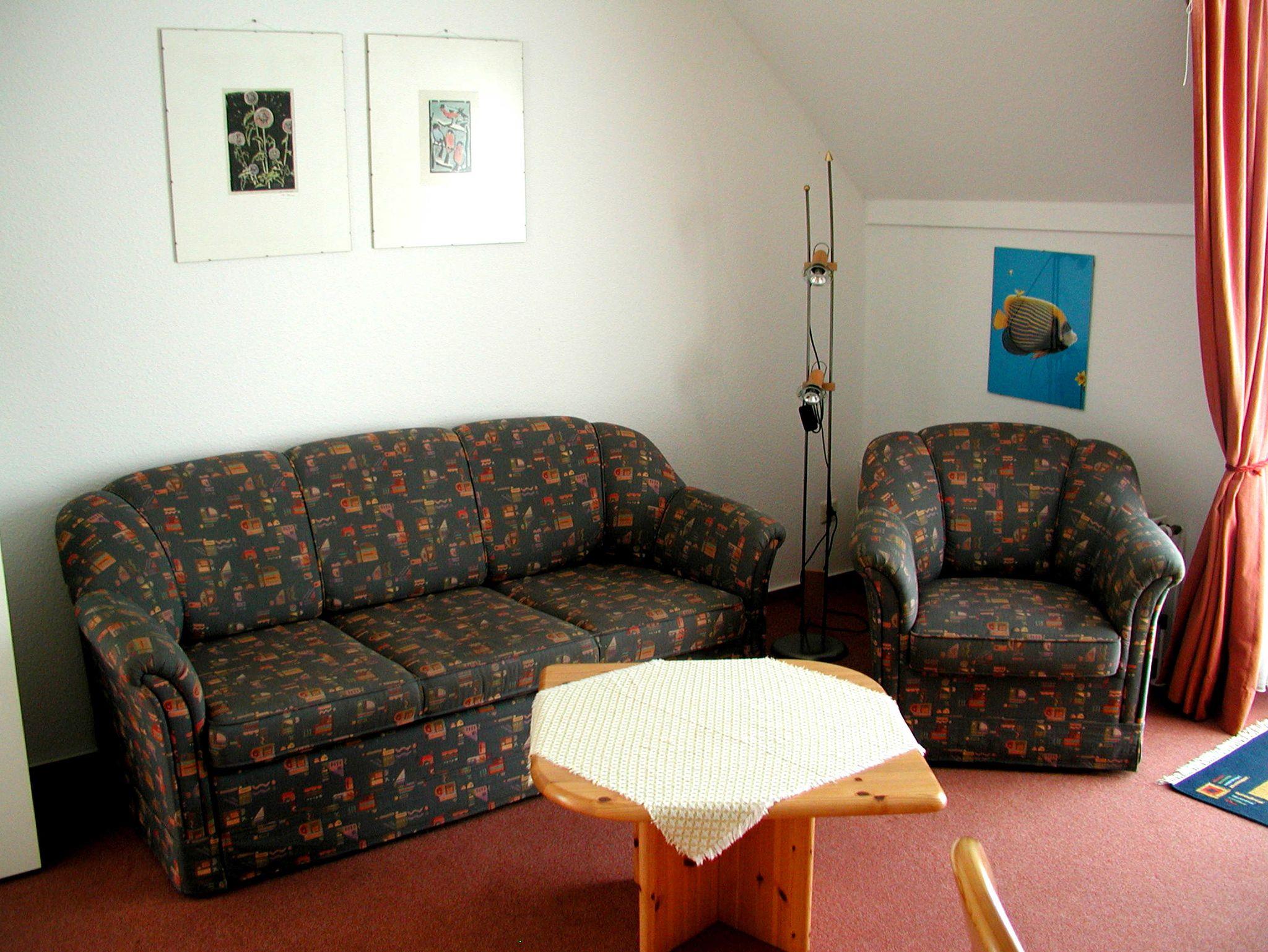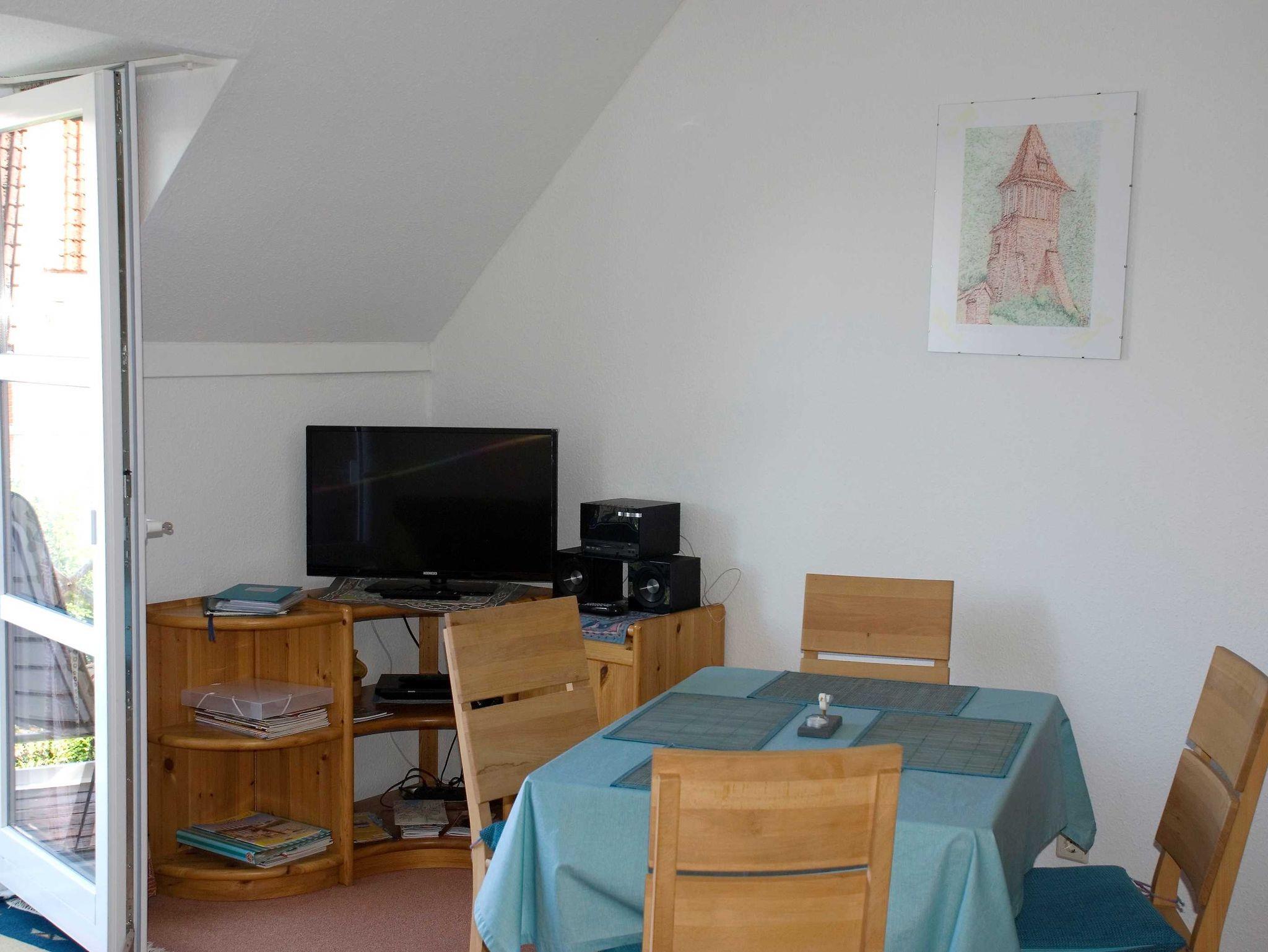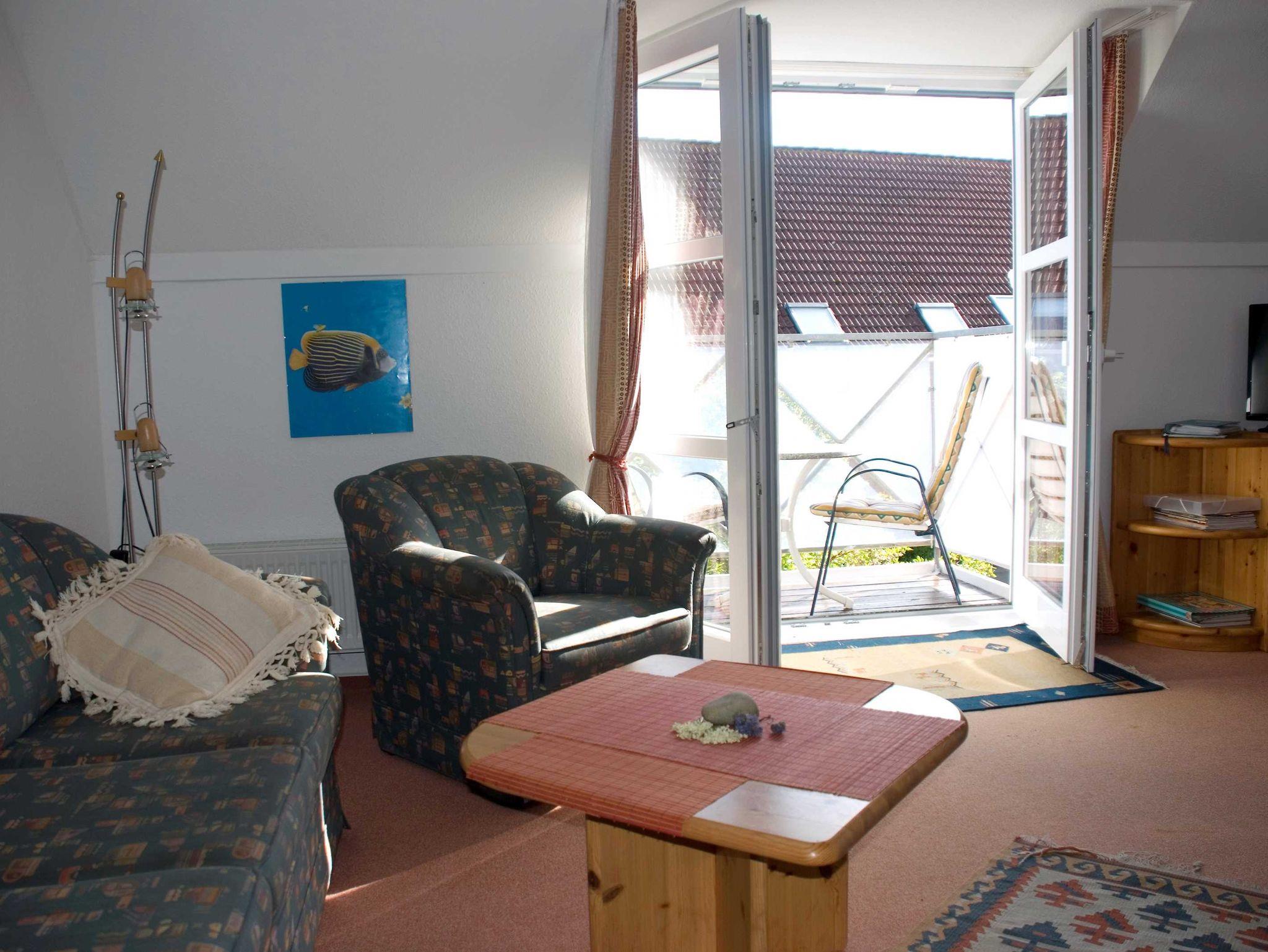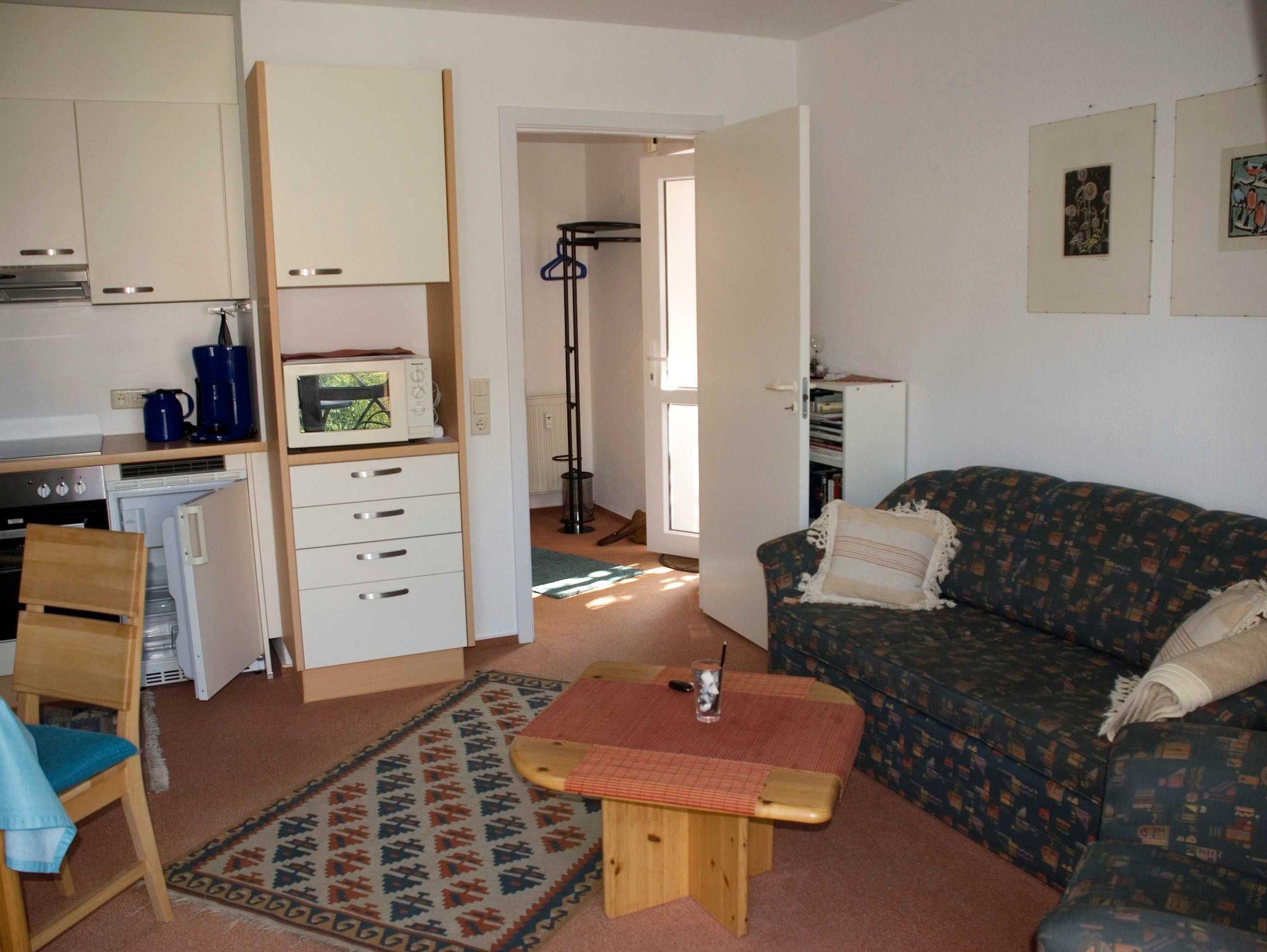 Die 2-Raum-Ferienwohnung liegt im 1. Obergeschoss der Anlage und verfügt über einen PKW-Stellplatz und einen Fahrradständer.