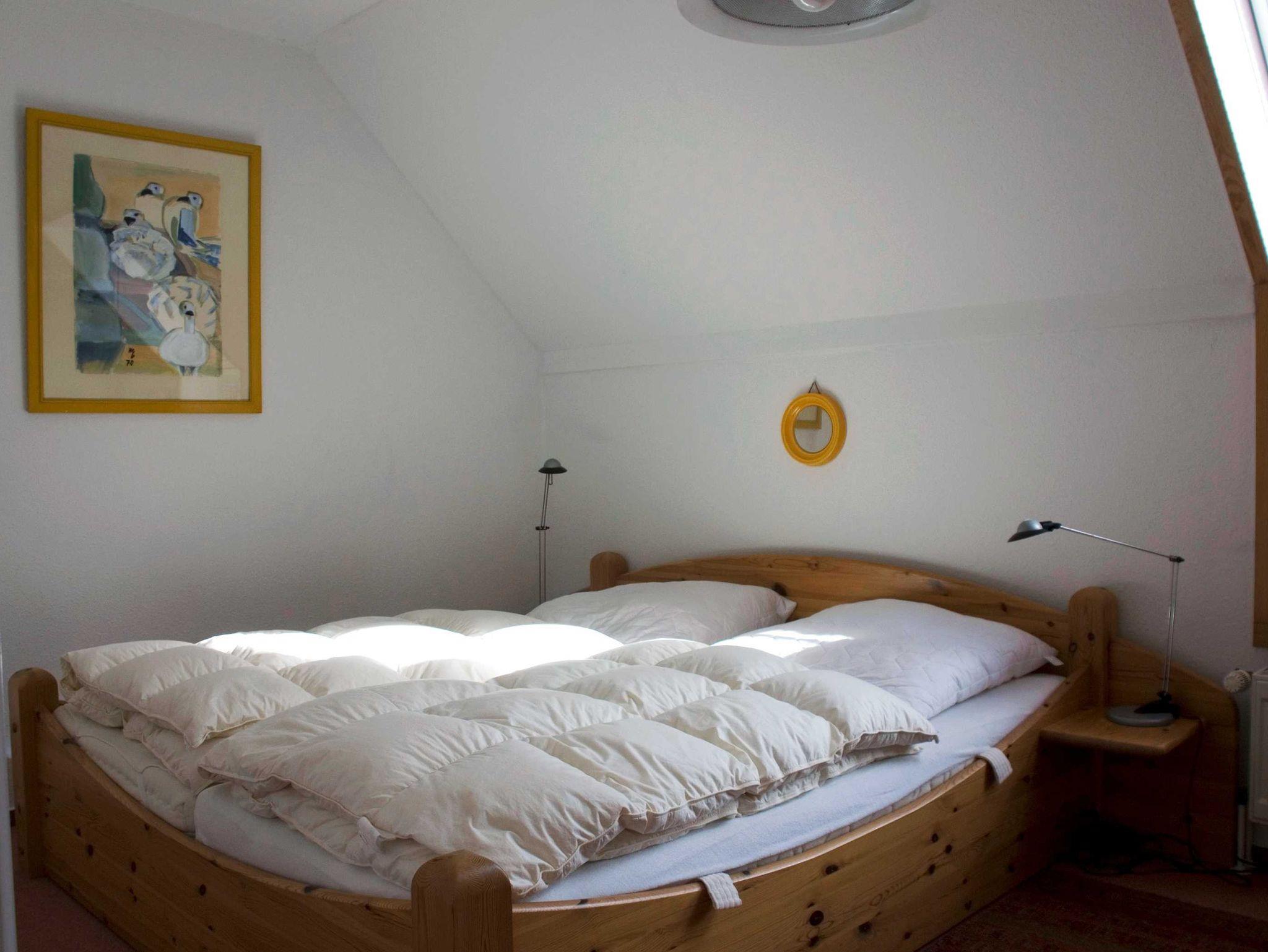 Schlafzimmer mit Doppelbett und Allergikerbetten.