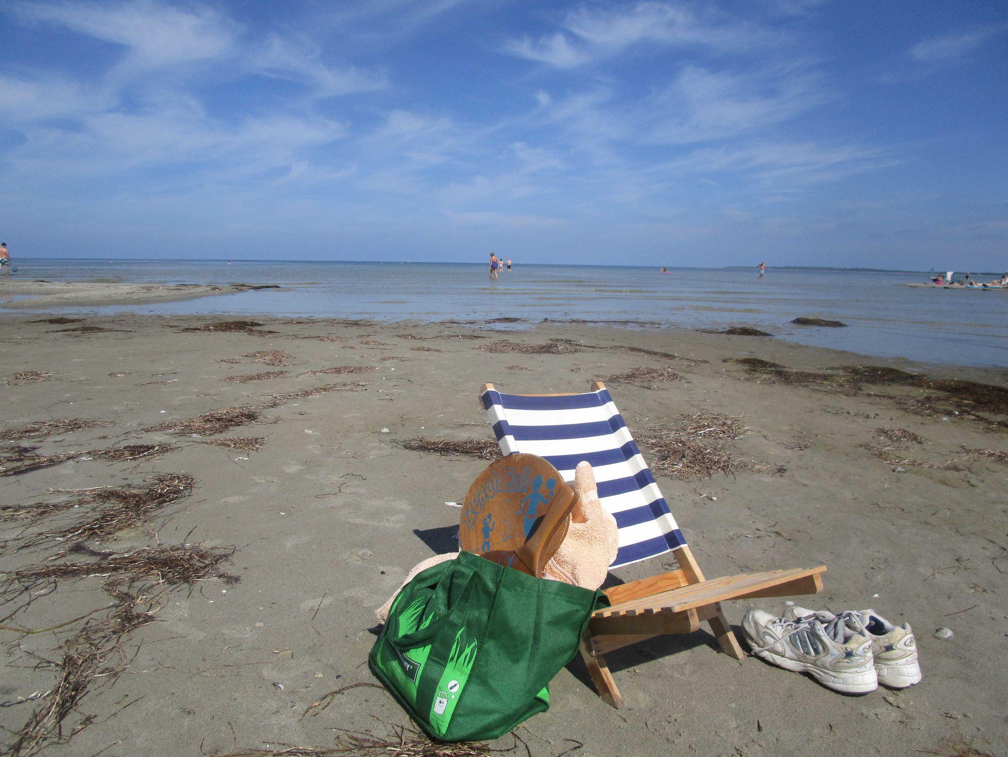 Aus der kleinen Bibliothek kann das eine oder andere Buch an den Strand oder nach Hause mitgenommen werden.