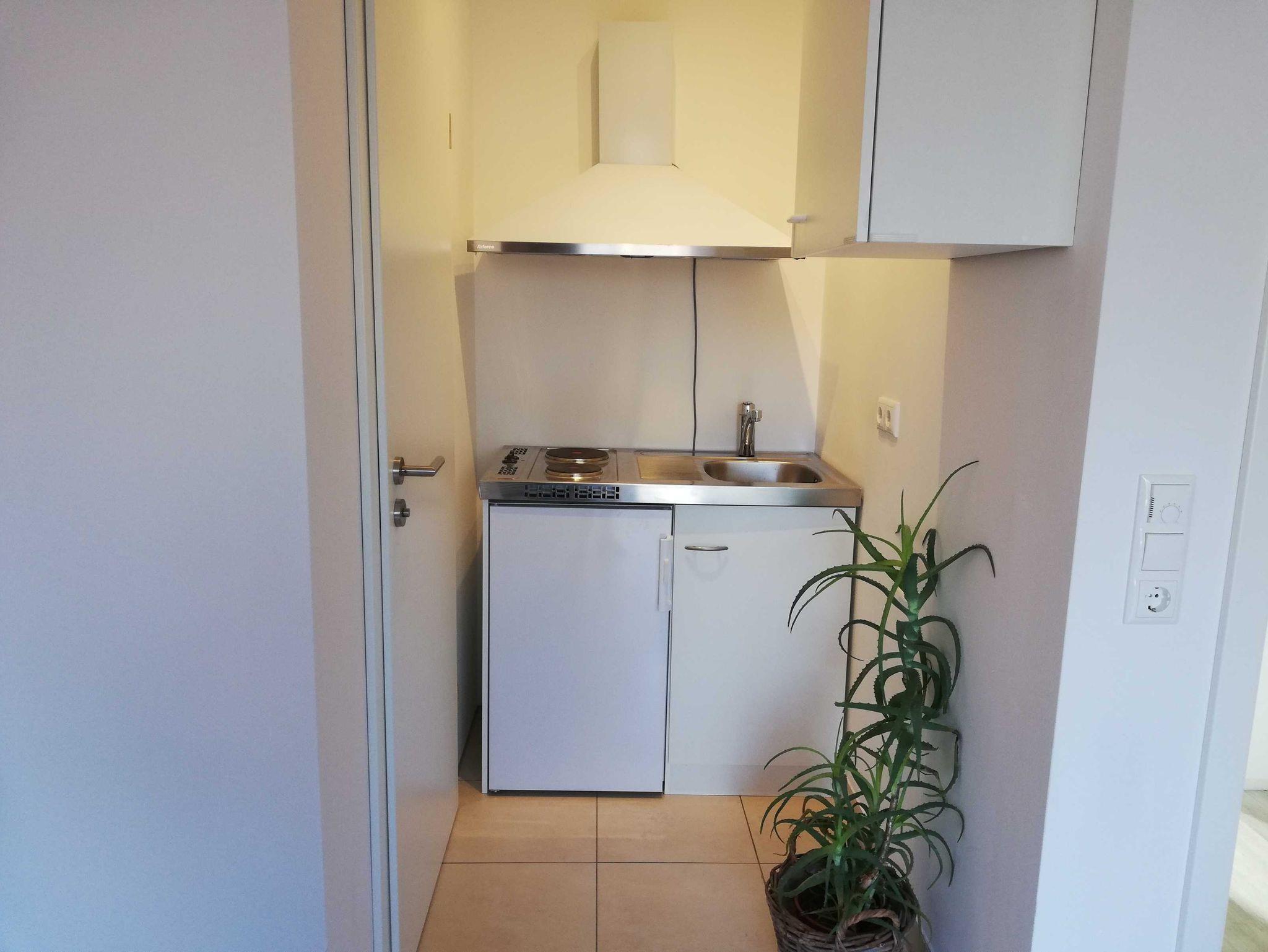 • Pantryküche (Spüle, E-Herd, Kühlschrank mit Gefrierfach) Geschirr, Besteck für 2 Personen