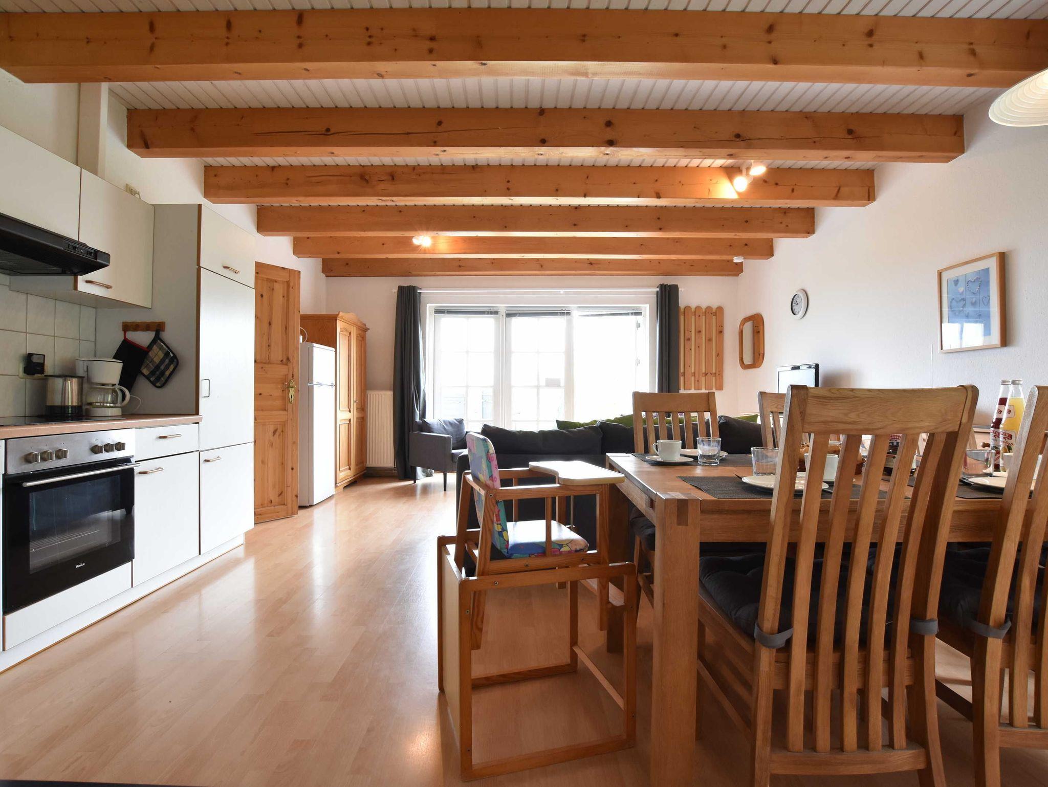 Appartement- Nr. I: 3- Raum -Appartement (5 Erw.+ 1 Kleinkind) im Erdgeschoss mit Kamin, Wasserblick und separatem Eingang. Großzügige Wohnküche mit Esstisch, Einbauküche (4- Platten- Herd, Backofen, Toaster, Wasserkocher, Kühlschrank mit Gefrierfach, Geschirrspüler), Wohnzimmer mit Kamin, Sitzecke und TV. 2 sparate Schlafzimmer: 1 Elternschlafzimmer mit 1 Doppelbett 1,80 x 2,00 ->Babybett stellbar und Zugang zu Du/ WC. 1 Kinderschlafzimmer mit 2 Einzelbetten 0,90 x 2,00 m ->kein Babybett stellbar!!! 1 Aufbettung im WZ auf Schlafcouch möglich. 1 zusätzliches Bad mit Badewanne. Terrasse mit Grill und eigenem Strandkorb + Seeblick.