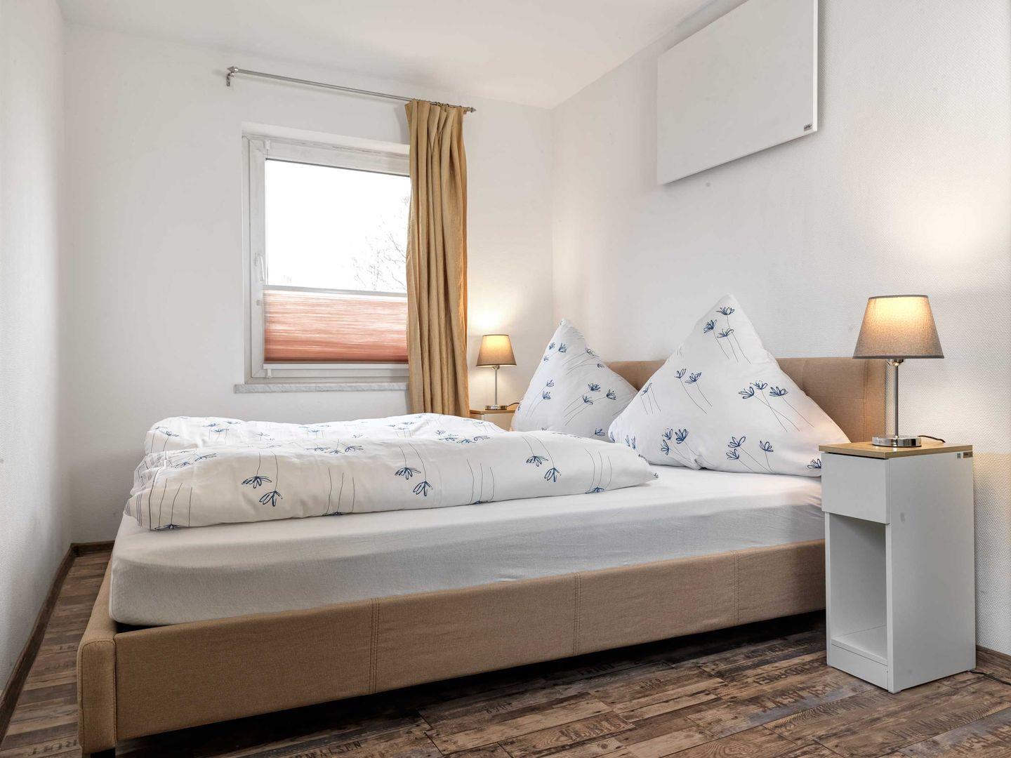 Zwei große Schlafzimmer verfügen jeweils über ein Doppelbett (1,80m x 2,00m) und einen Kleiderschrank.
