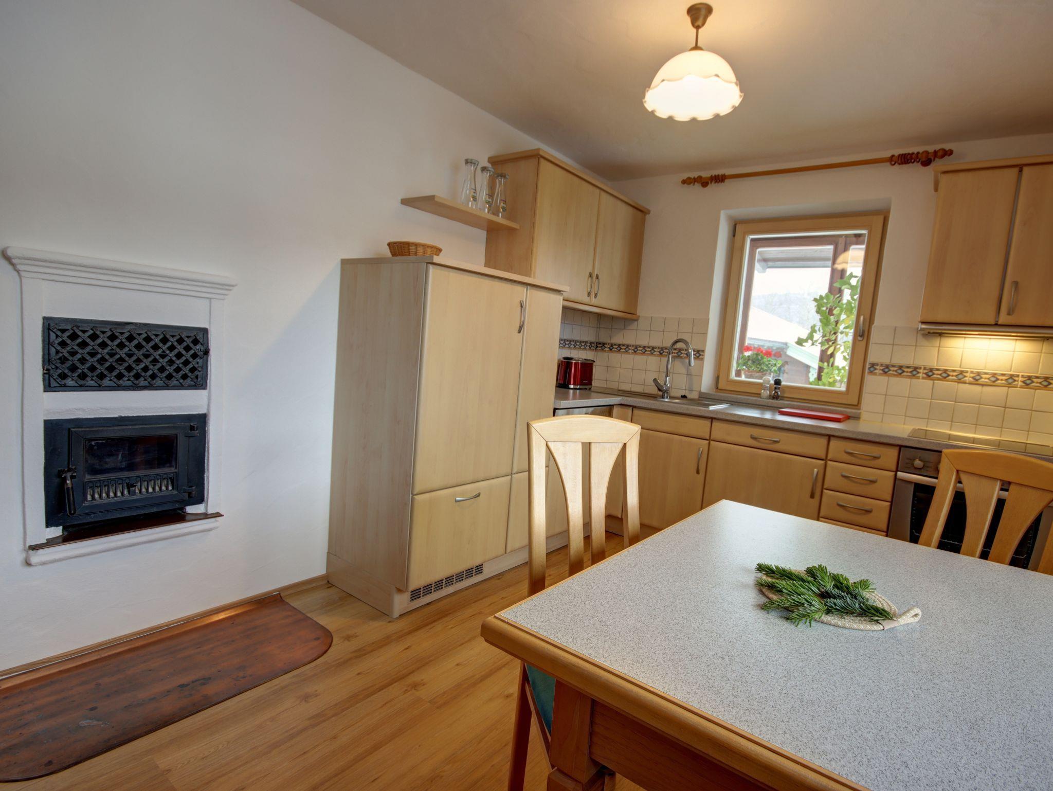 Küche ausgestattet mit Ceranfeld-Herd, Dunstabzug, Backofen, Kühlschrank mit Gefrierfach, Geschirrspüler, Toaster, Eierkocher, Wasserkocher, Töpfe, Teller, Besteck, usw.