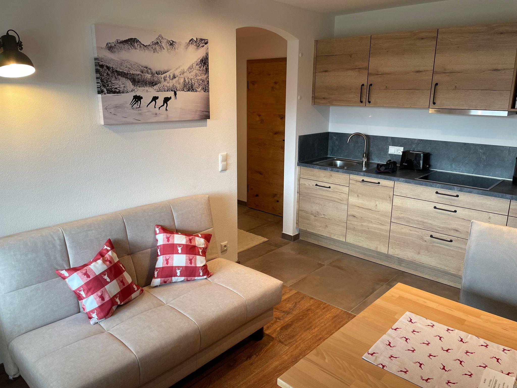 Neu renovierte und sehr hochwertig eingerichtete Ferienwohnung.Schlafzimmer Wohnküche mit Herd Backofen Kühlschrank Spülmaschine. Im alpenländischen Stil Wohnzimmer mit Esstisch Sofa und Flach TV. BAD und WC. Direkter Zugang zum Balkon mit Bergblick zum verweilen.Haustiere auf Anfrage!