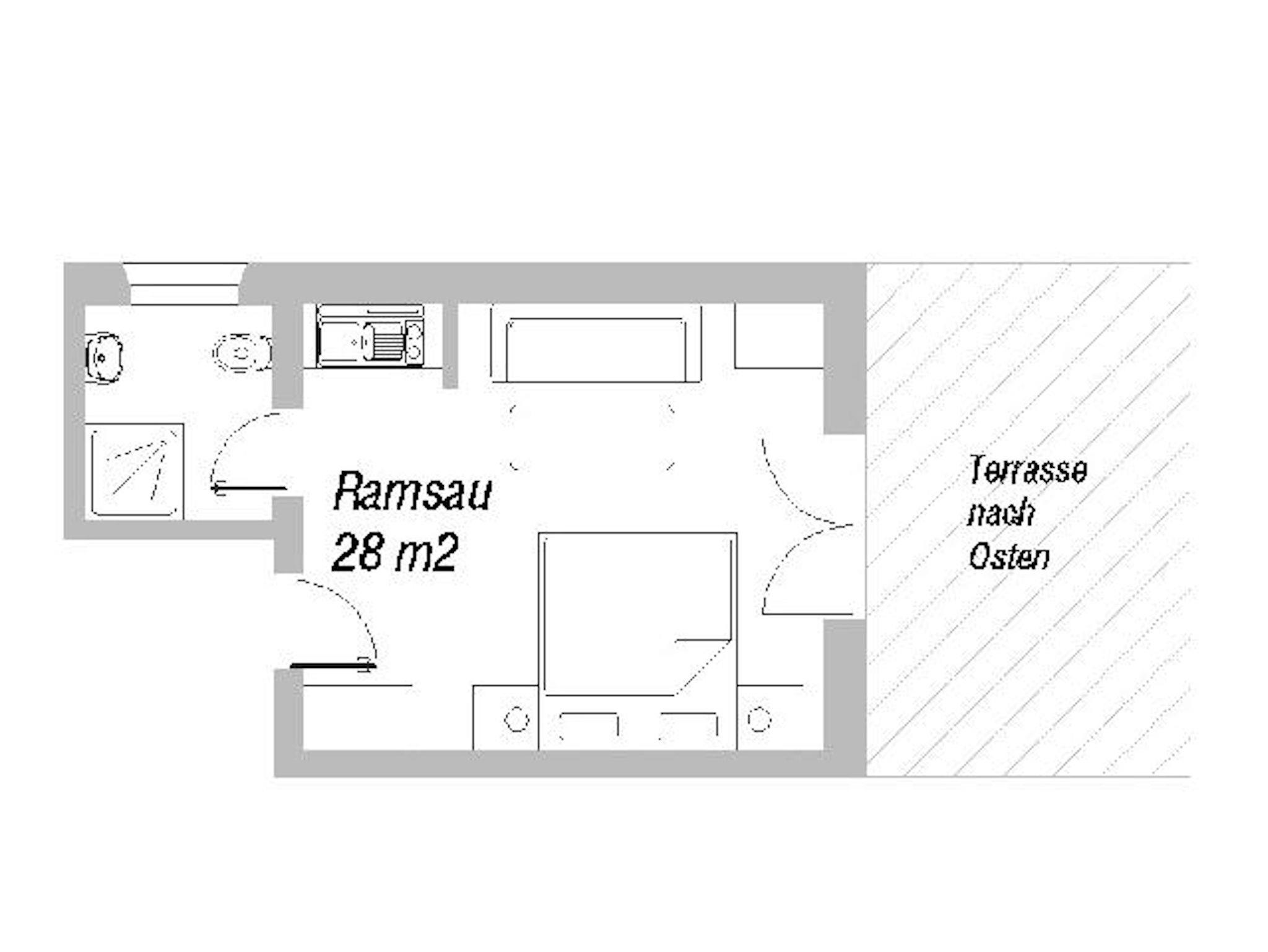 Ferienwohnungen Almbrünnerl - Chiemgau Karte, Ferienwohnung Ramsau für 2 Personen, 1 Wohnschlafraum, Terrasse, 28 qm