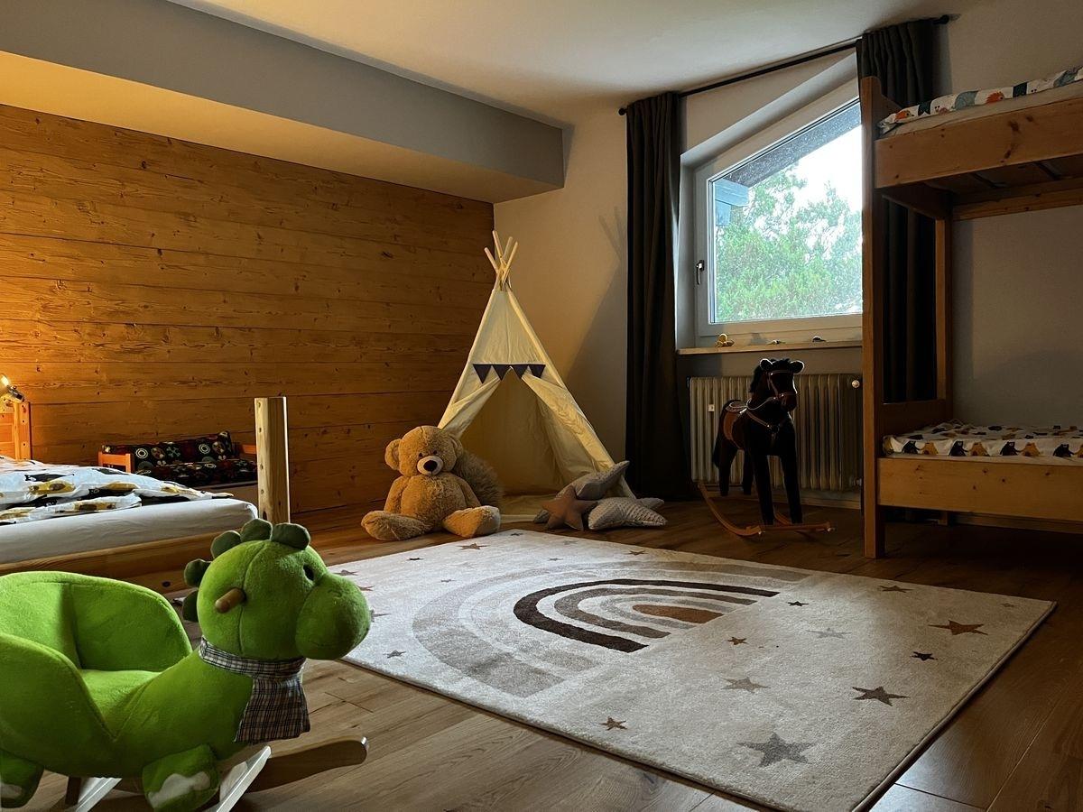 Dieses großzügige Chalet in Bayern bietet auf 200 m² Wohnfläche Platz für 6 Erwachsene und 3 Kinder – perfekt für Familienurlaube oder gemeinsame Auszeiten mit Freunden. Drei Doppelzimmer, ein Kinderschlafzimmer mit Stockbett sowie eine liebevoll gestaltete Kinderwelt mit Spielzeug, Kuschelecke und Chill-Out Area machen die Unterkunft besonders familienfreundlich.