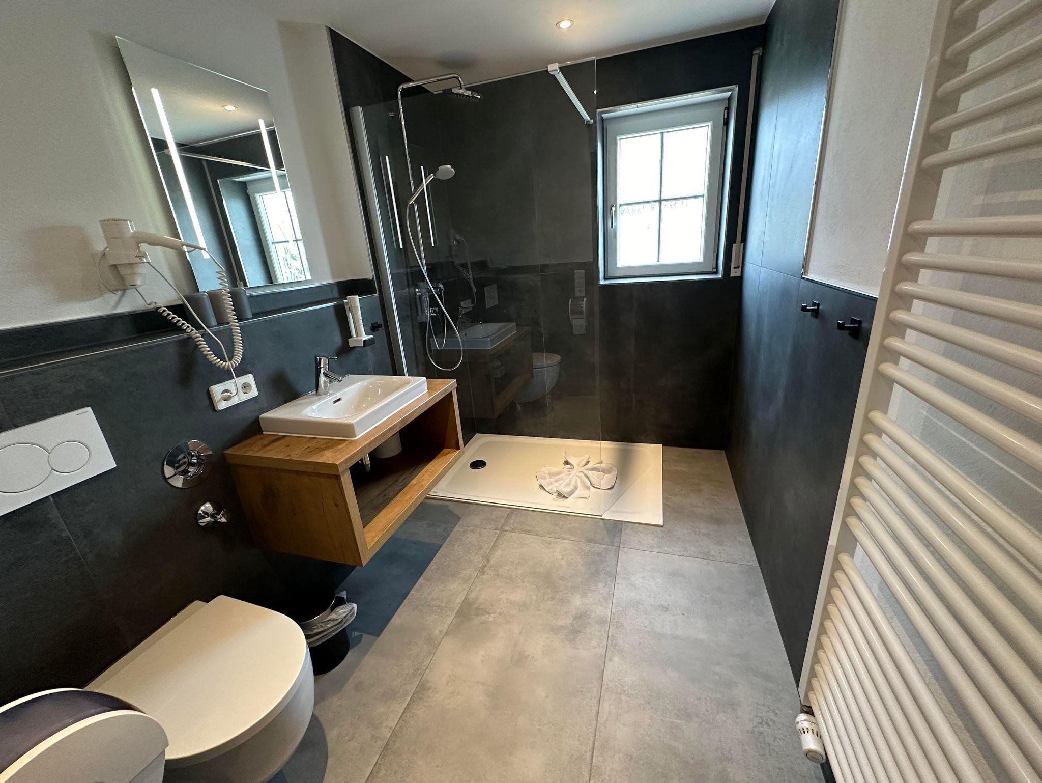 Unsere große Ferienwohnung 4 befindet sich im Gästehaus und verfügt über 2 separate Schlafzimmer, einer Küche mit Essbereich, einem separaten Wohnzimmer und einer großen Terrasse. Sehr gut geeignet für 2 bis maximal 6 Personen.