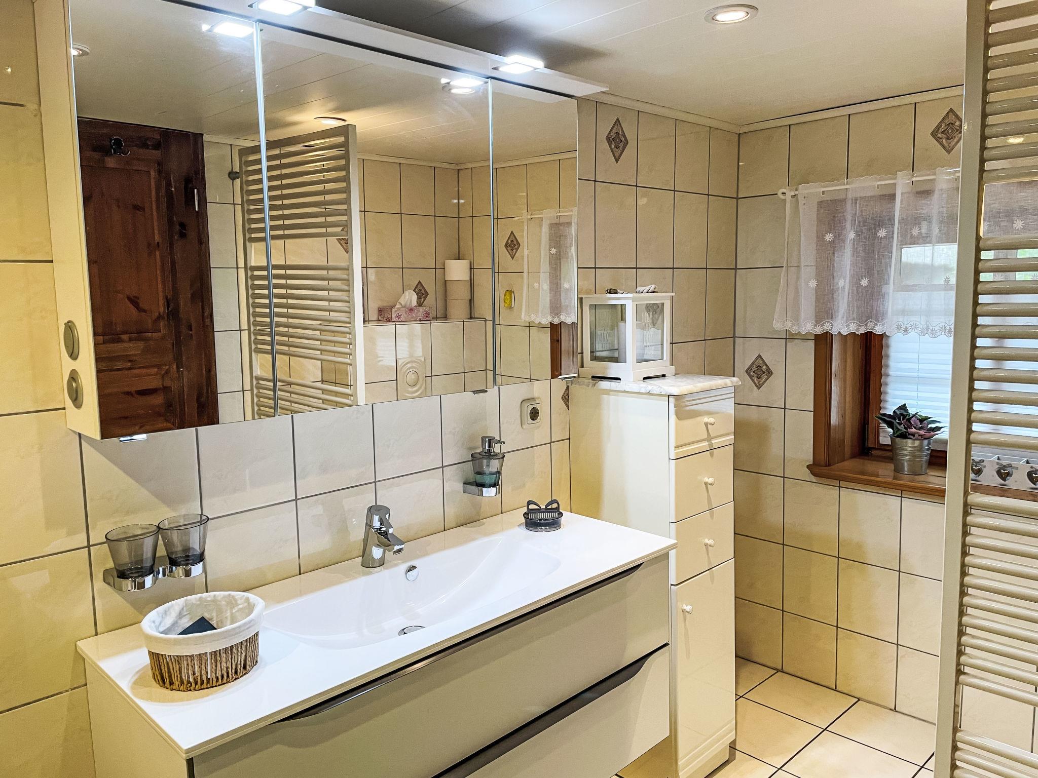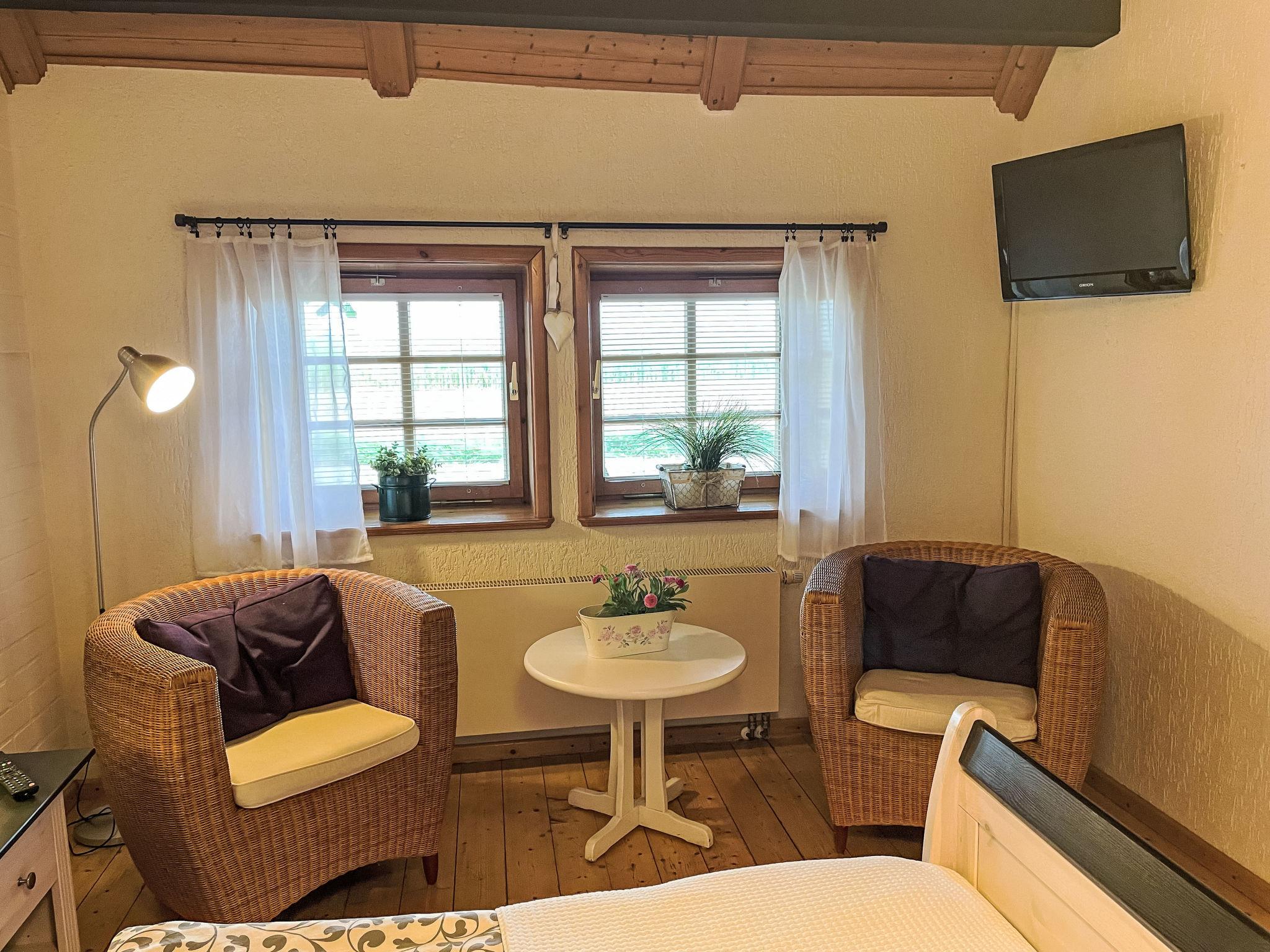 3-room granny flat 90 m2, on the ground floor. Living/dining room with satellite TV (flat screen). 1 room with 1 double bed (180 cm, length 200 cm), bath/WC and satellite TV (flat screen). 1 small room with 1 french bed (140 cm, length 200 cm), satellite TV (flat screen). Kitchenette (oven, dishwasher, 4 ceramic glass hob hotplates, freezer, electric coffee machine). Electric heating. Patio. Deck chairs (2). Facilities: children's high chair. Internet (WiFi, free). Please note: suitable for families. Maximum 1 pet/ dog allowed. Private entrance. Attention: when booking as a tradesman, a maximum of 2 people are allowed.