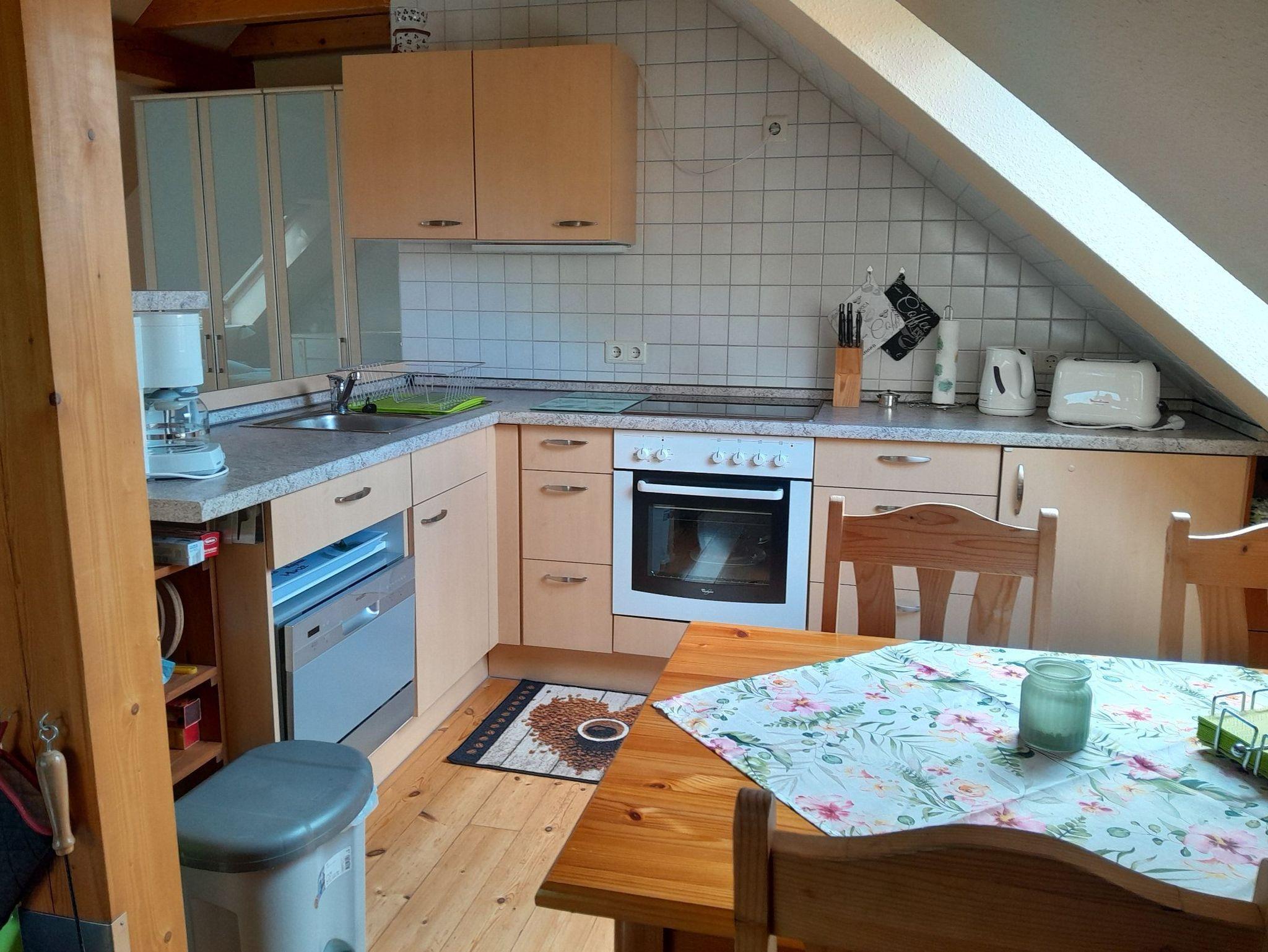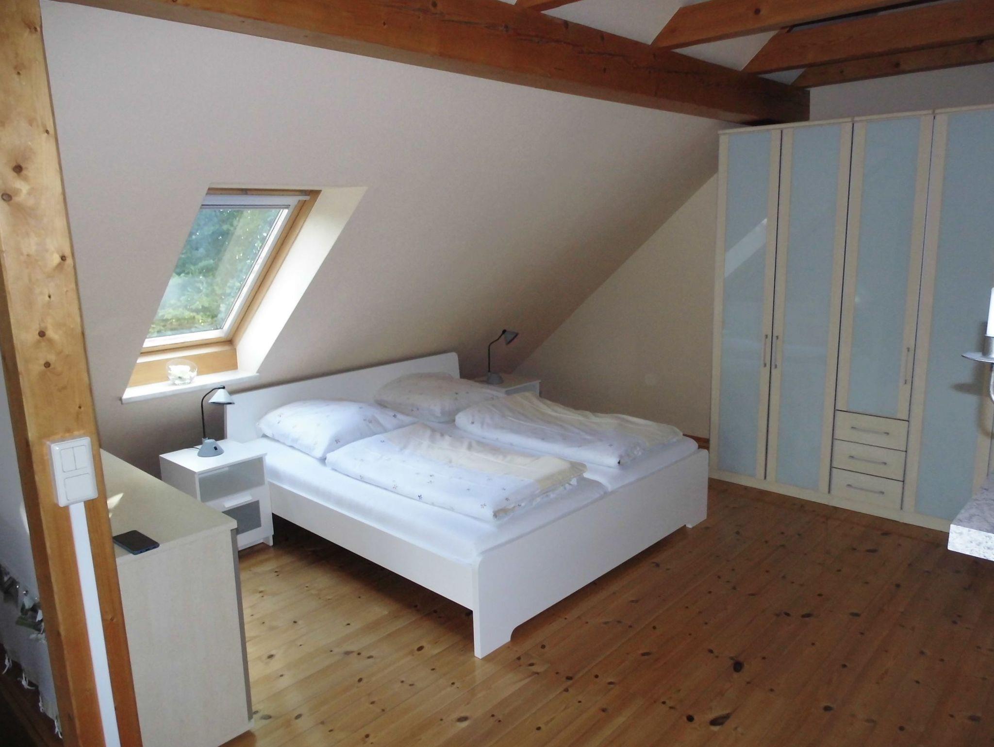 Das Apartement ist geschmackvoll eingerichtet und verfügt über Zentralheizung. Es stehen ein Stellplatz für PKW unterm Carport und Abstellmöglichkeiten für Fahrräder sowie ein möblierter Balkon (ohne Grill) zur Verfügung. Die ca. 46 qm große Dachgeschoss-Wohnung ist für bis zu 2 Personen ausgestattet und verfügt über einen großen, kombinierten Wohn-Schlafraum mit Kamin. Das Grundstück umfasst eine Größe von 960 qm. Gegen eine kleine Gebühr stellt die Eigentümer das Kaminholz zur Verfügung. Den Betrag hinterlegen Sie bitte bei Abreise in das dafür vorgesehene Gefäß. Zu dieser Ferienwohnung können noch eine weitere Ferienwohnung und ein kleines Ferienhäuschen gemietet werden.