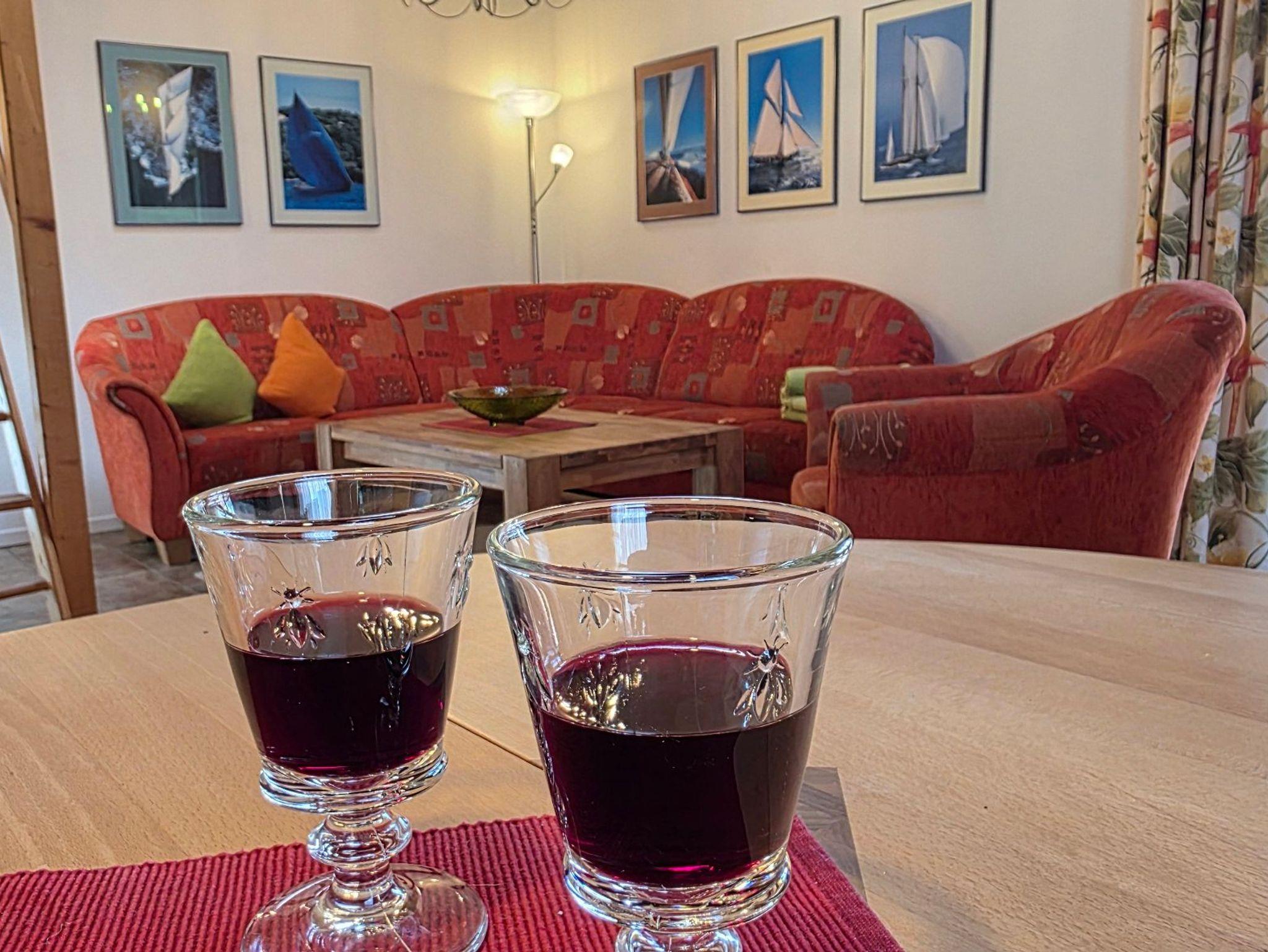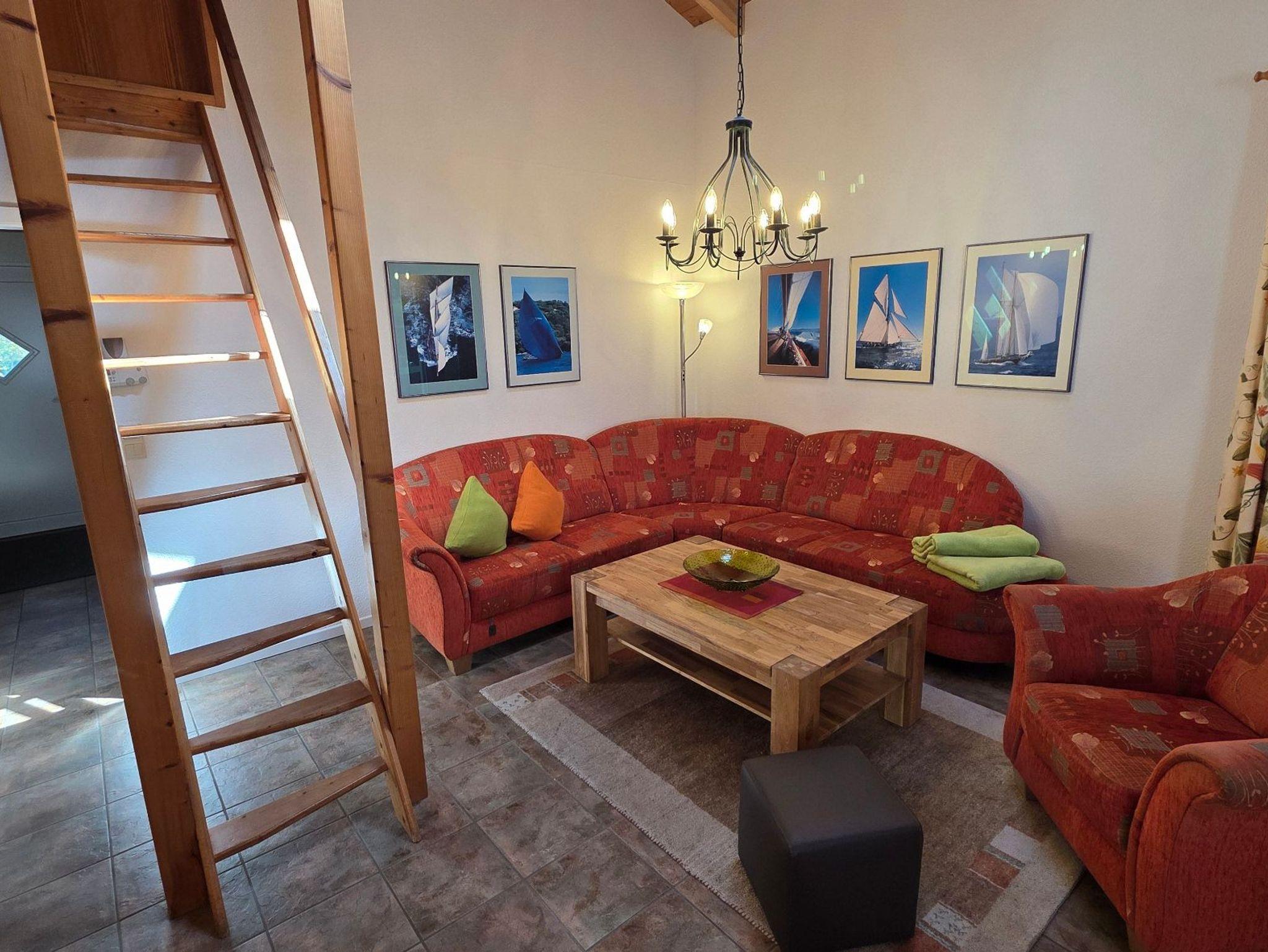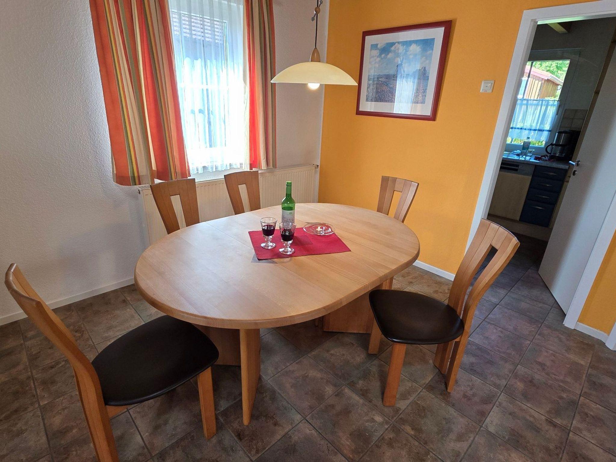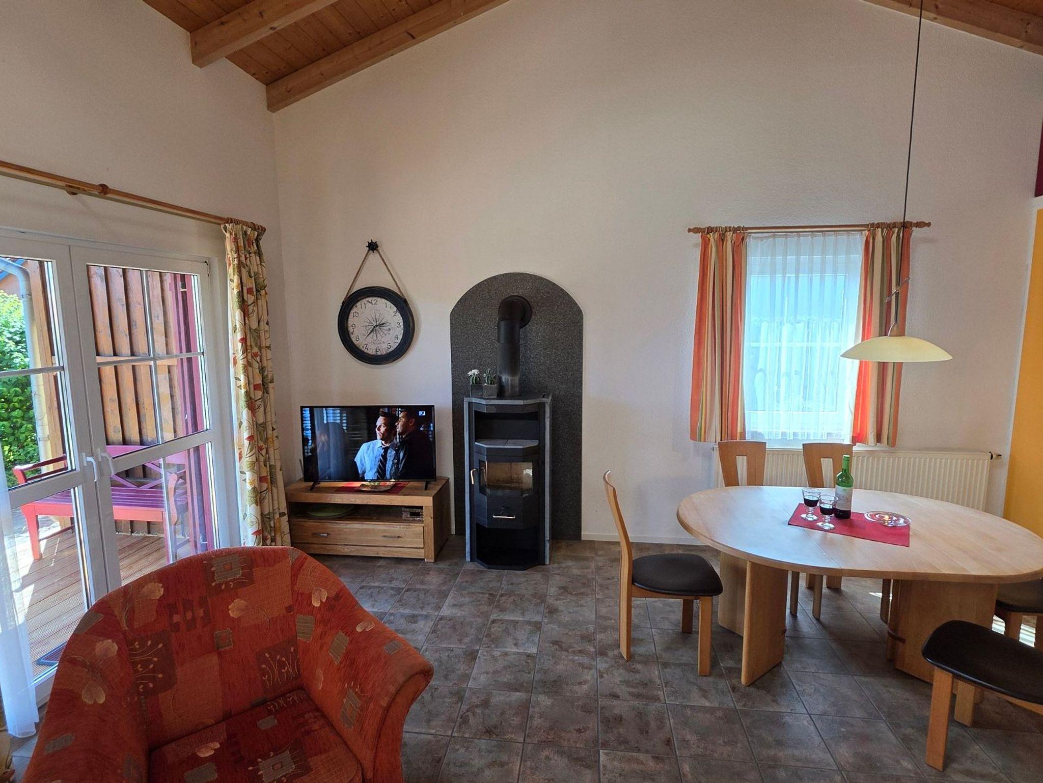 Das gemütlich eingerichtete Haus, im Landhausstil, verfügt über einen großzügigen Wohnraum mit Kamin und direktem Zugang zum Garten.