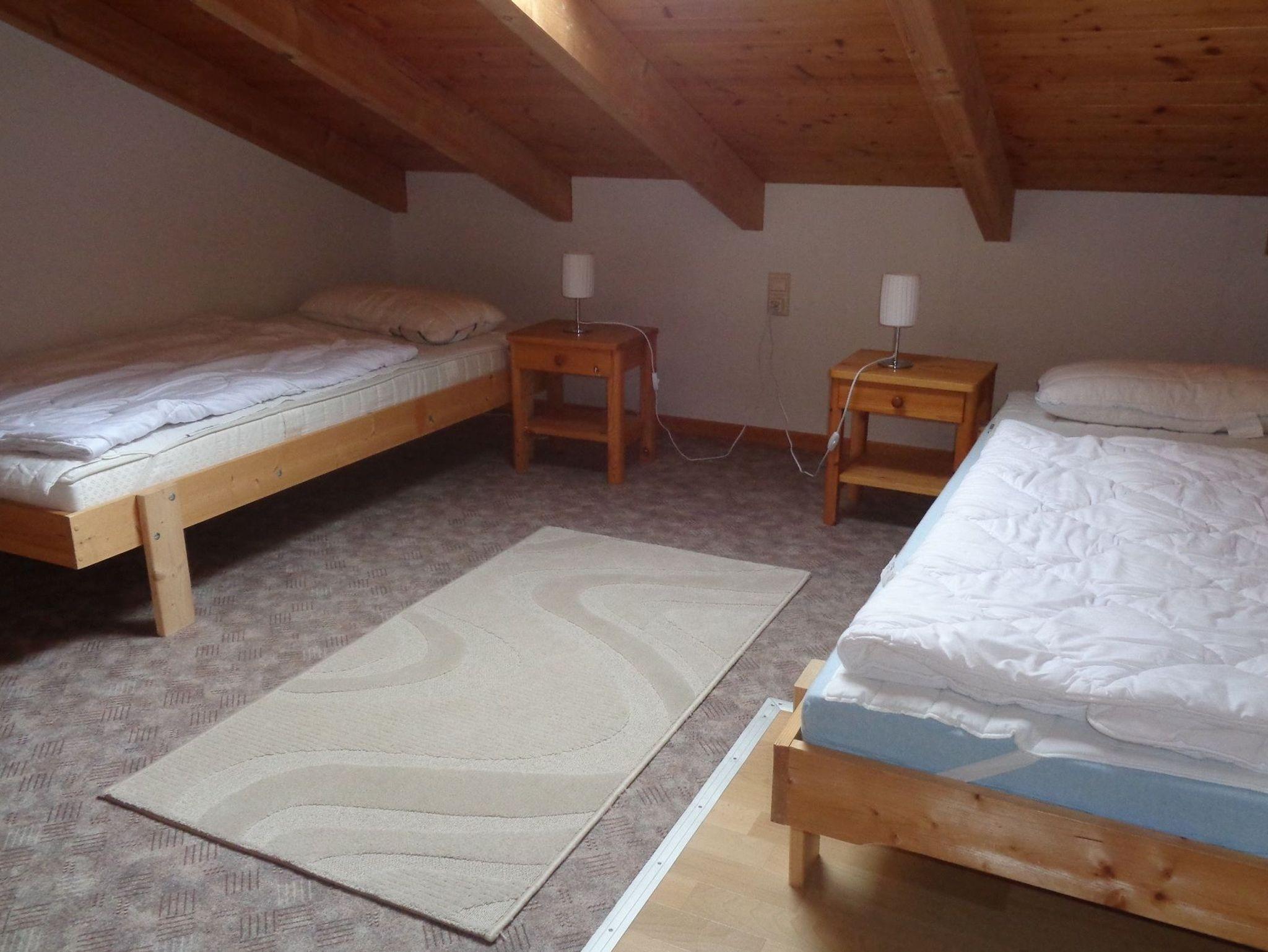 Der Schlafboden, ein Paradies für Kinder, wird über eine Wendeltreppe erreicht und hat zwei Einzelbetten.