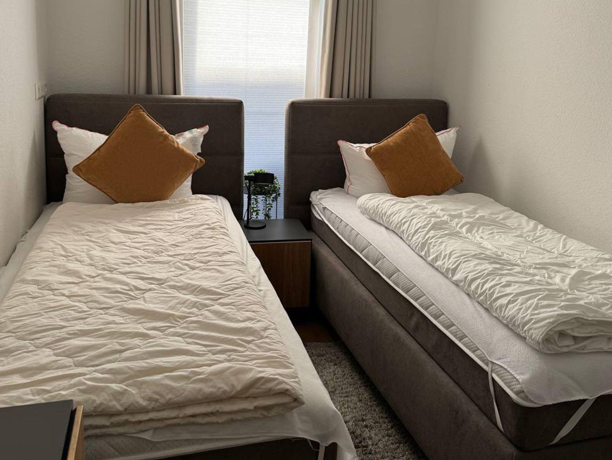• Schlafzimmer 2 im Erdgeschoss: 2 Einzelbetten 100x200 cm (Boxspring)