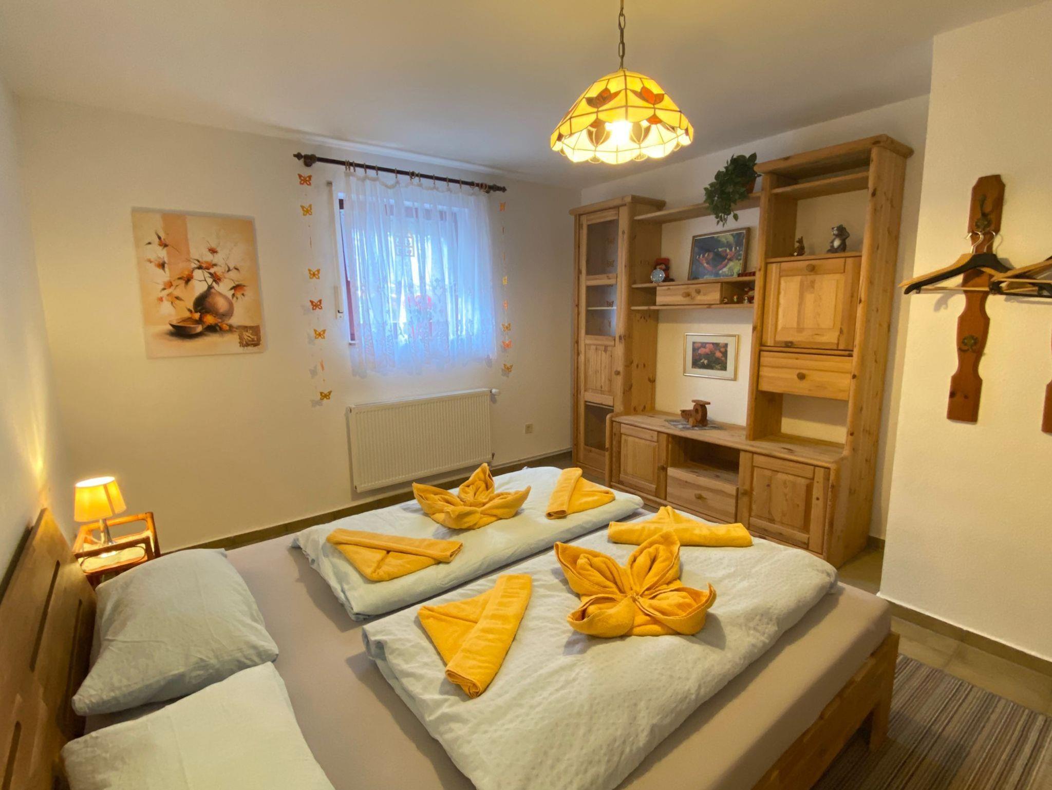 Großes und familienfreundliches Ferienhaus für bis zu 7 Personen. Das circa 100 qm große Haus besteht aus einem hellen Wohnzimmer mit Sitzgruppe (Sat-TV, Radio/CD), einem Essplatz im Wohnzimmer und einer separaten Küche, die mit allem ausgestattet ist für entspanntes Kochen. Das Wohnzimmer verfügt über eine moderne Ledersitzgruppe. Im EG befindet sich ein Schlafzimmer mit einem Doppelbett sowie eines der zwei Bäder. Das Duschbad im unteren Bereich ist mit einer Waschmaschine ausgestattet. Zwei gemütliche Schlafzimmer befinden sich im OG. Ein Schlafzimmer hat ein Doppelbett 180x200 und ein Einzelbett 90x200.Das zweite Schlafzimmer ist mit einem 160x200 Bett bestückt Im OG befindet sich auch das zweite Bad mit Badewanne. Bis zu 2 Vierbeiner sind herzlich willkommen. Genießen Sie gemeinsam mit der Familie den großen Garten und die Terrasse. Das Grundstück ist eingezäunt.