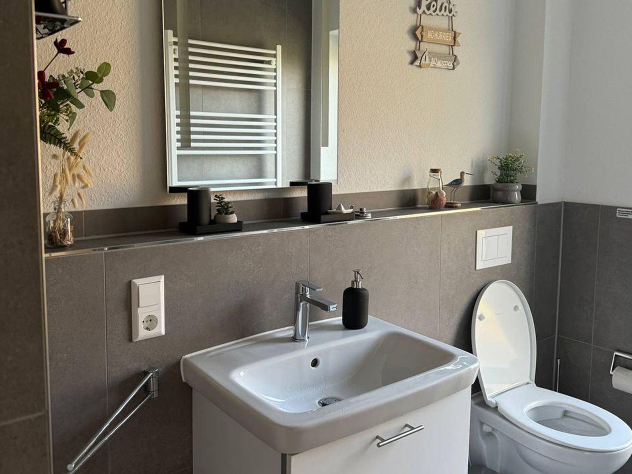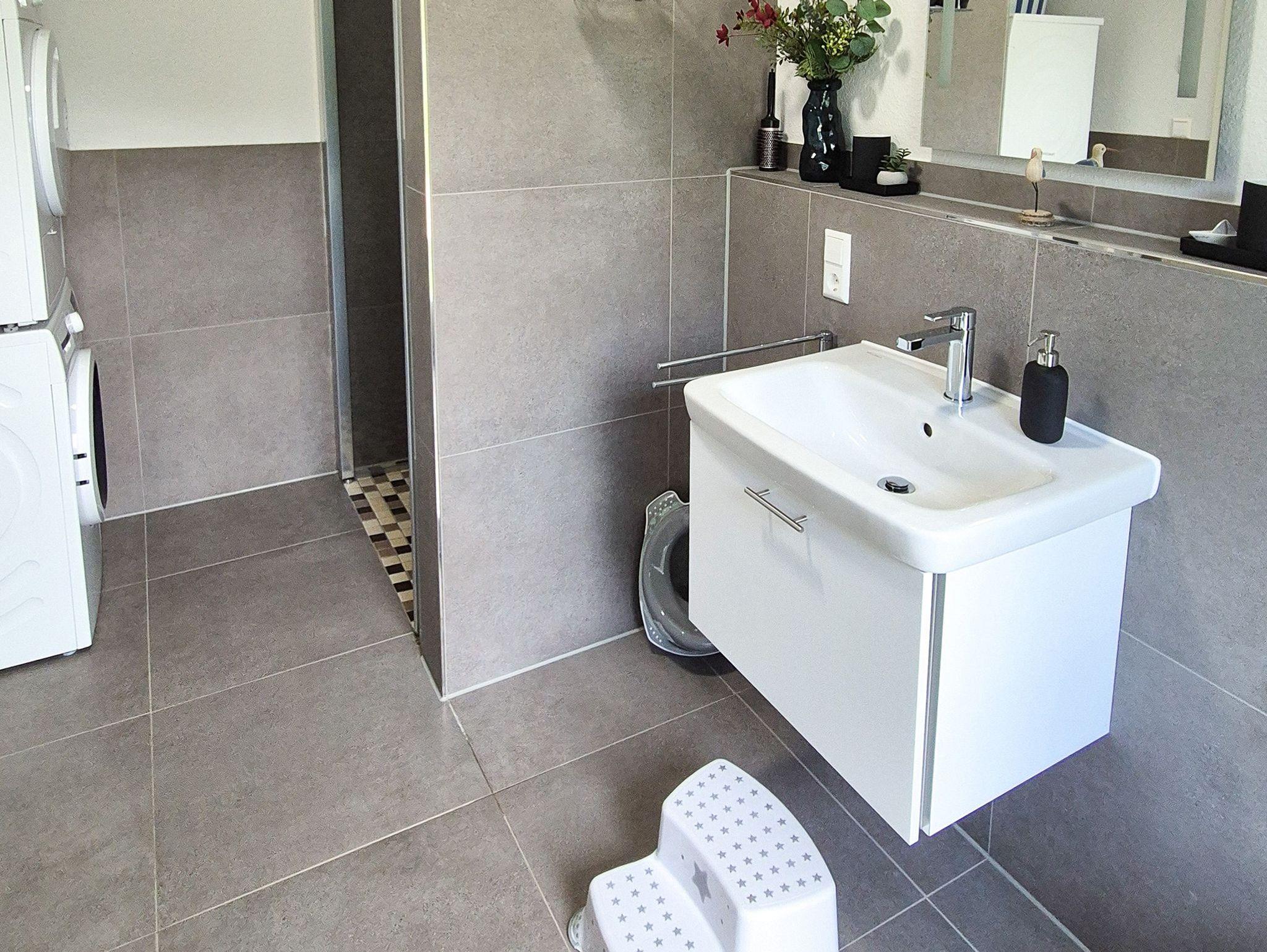 • 1 großes Badezimmer mit bodengleicher Dusche