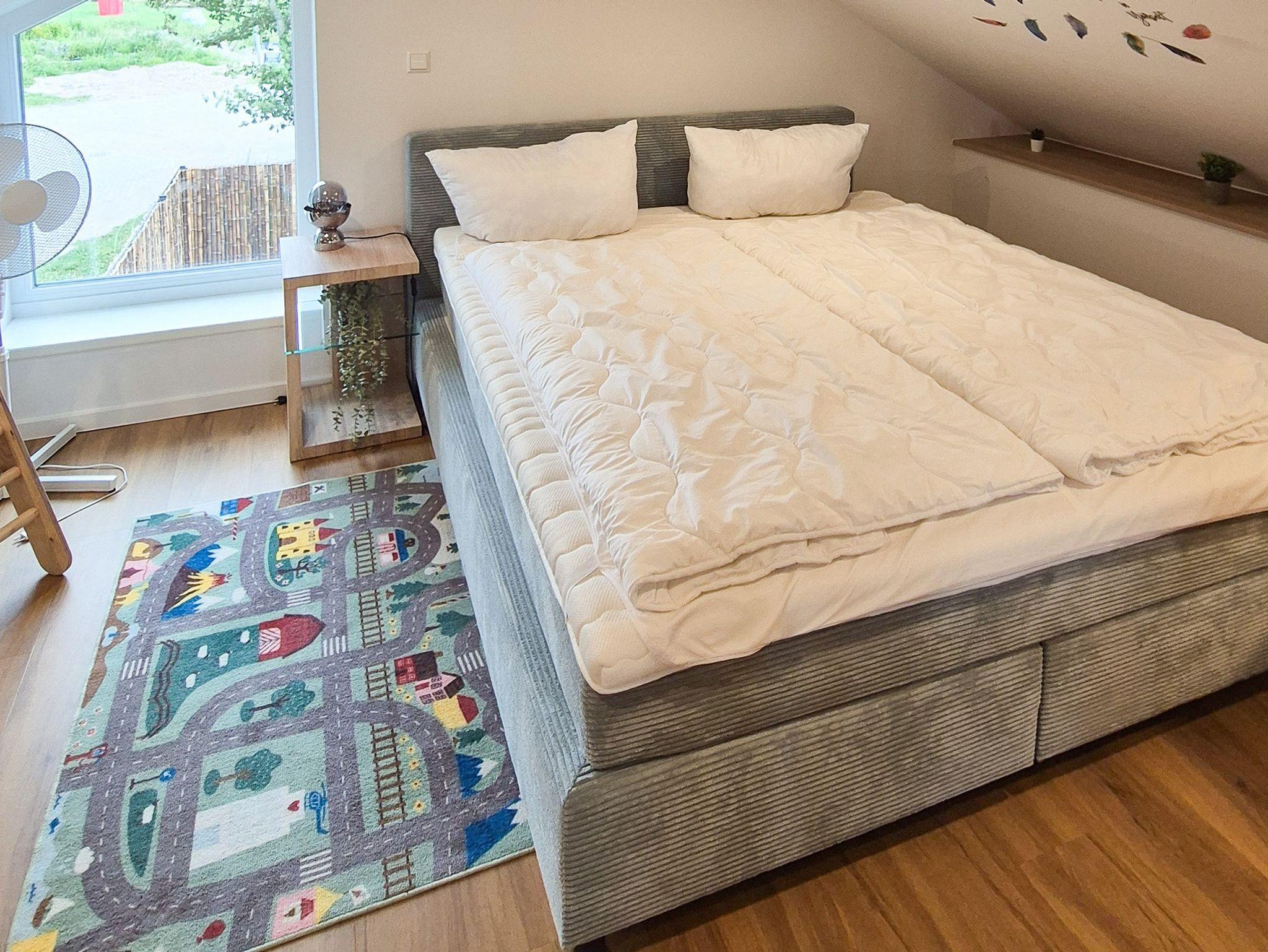 • Schlafzimmer 2: Doppelbett 180x200 cm (Boxspring) + schmales Schlafsofa (für 1 Person)