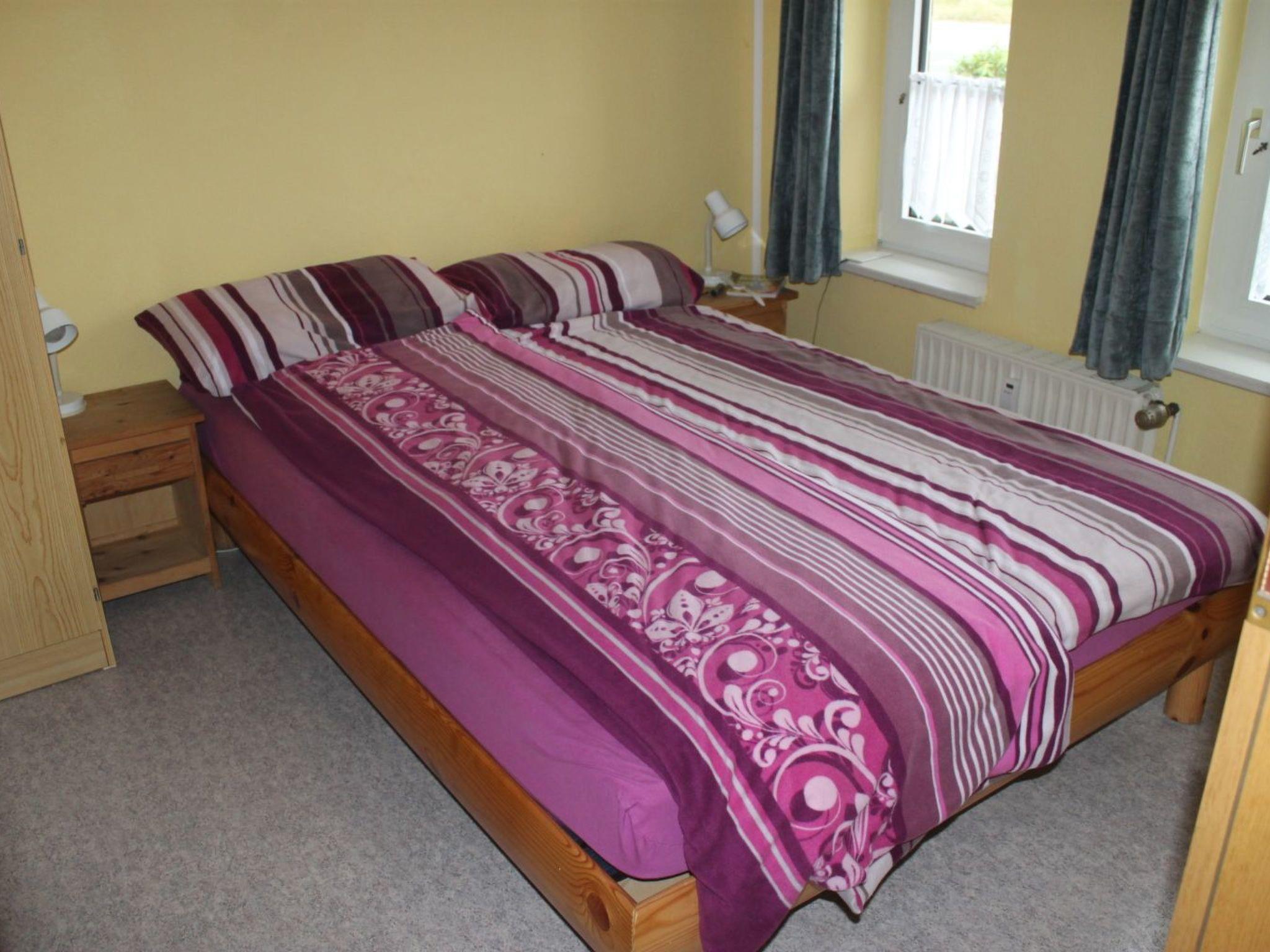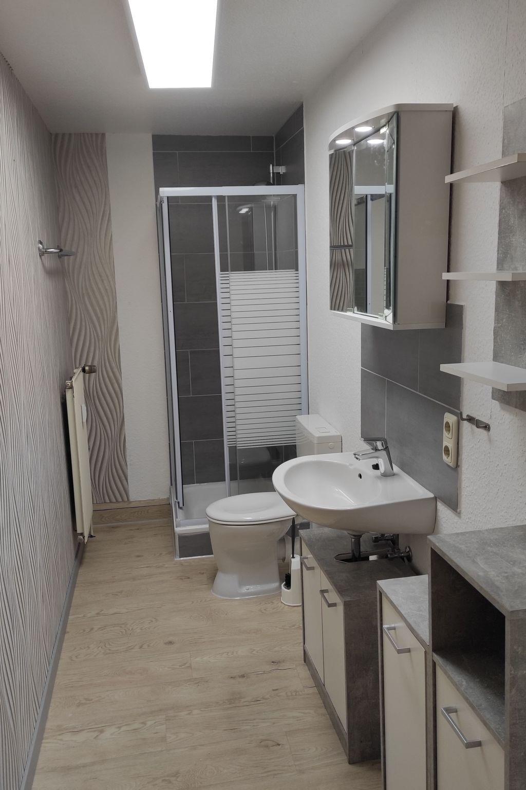 The cosy holiday apartment is on the ground floor and provides 38m² of space for up to four people. It was completely renovated in May 2017. The floors throughout the apartment are laid with laminate and all walls have new wallpaper. The front door and all internal doors have been renewed. The fully-equipped built-in kitchen is equipped with all the necessary utensils. The tableware, a coffee machine and various utensils were new in October 2016. An electric stove with an oven, a fridge, a toaster and a kettle are also provided. The living room has a sofa bed with a new flatscreen TV and a modern satellite receiver. A new dining space (2016) invites you to enjoy meals together after cooking. The bedroom has a comfortable French bed (140cm wide). The bathroom has been fitted with a new washbasin, WC, shower cubicle and flooring.