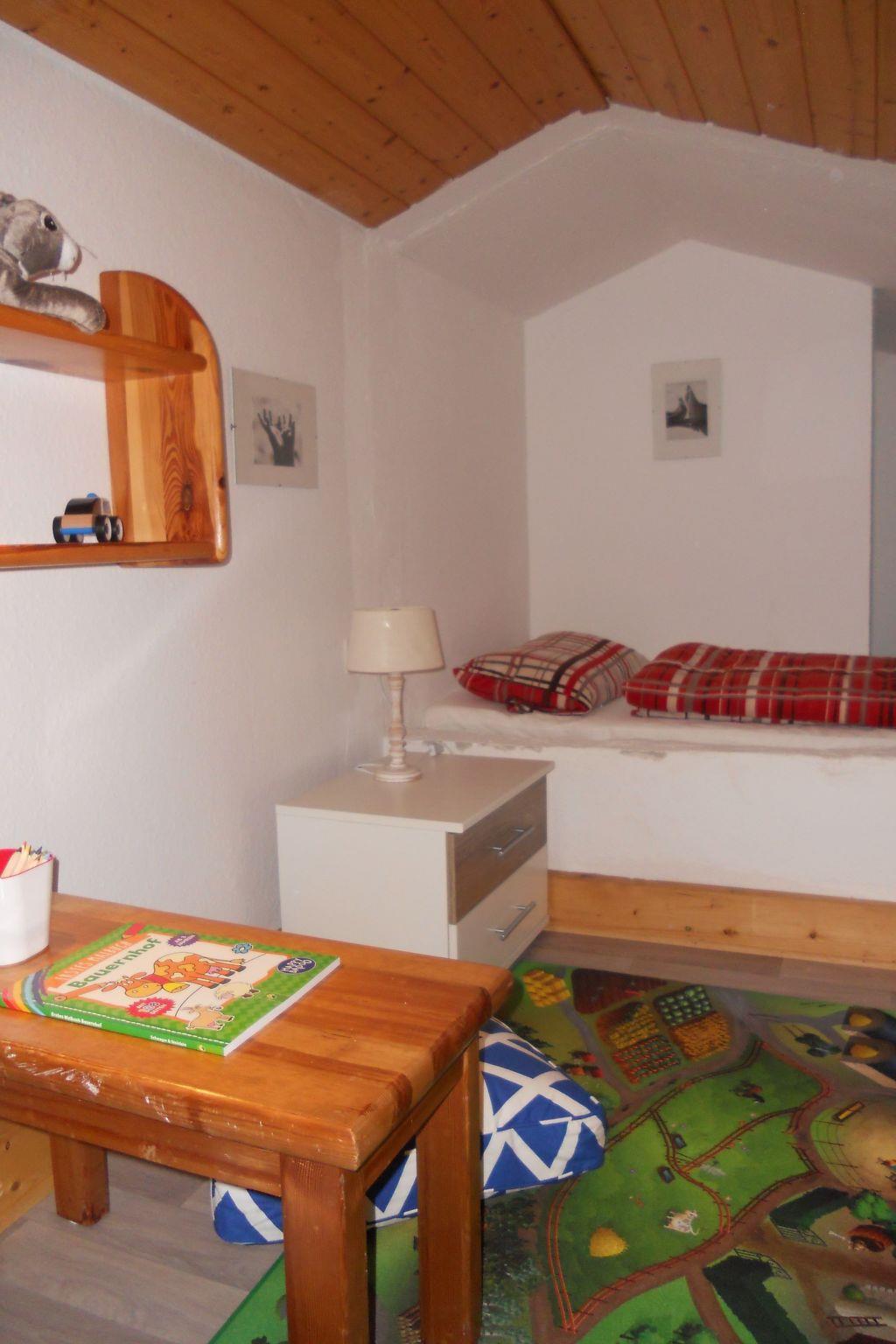 Experience a holiday with an atmosphere of well-being in a house with exposed wooden ceiling beams (ceiling height up to 3.6 metres), a living room flooded with daylight through the big panoramic windows facing south-east, affording an open view of the adjacent meadow. It is equipped with satellite TV, a DVD player and a Dolby surround sound system. Insulating blinds provide sun protection. Free Wi-Fi is available. Cooking will be enjoyable on holiday in the very well-equipped kitchen-diner to the side, with a dishwasher, ceramic hob, fridge with freezer compartment, kettle, egg boiler, toaster, combined coffee and pads machine, mixer, scales, juicer. On cooler days, the gas central heating provides pleasant warmth and the fireplace stove exudes a cosy atmosphere. The floor throughout the house is tiled or laminate. The windows are all fitted with insect screens, including the balcony door. The solid brick house consists of a living room with an adjoining open kitchen and access to the terrace, a bedroom with a double bed, bedside tables and a spacious wardrobe, a children’s room under the gallery with three single beds (the third bed is accessed up a wooden ladder in the gallery, where there is enough space to play), a hallway, a shower room with a WC and a little storage space. A changing table, highchair and travel bed without bed linen are available free of charge. The shower room with a shower, washbasin and WC provides plenty of towels, a hairdryer and has a window.