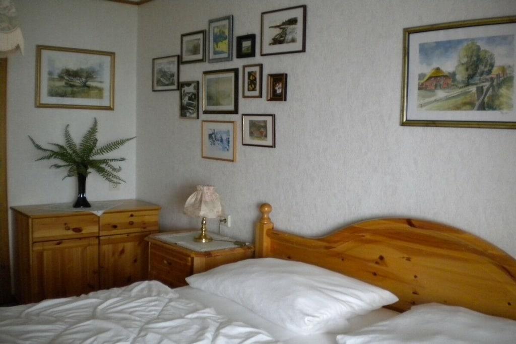 Apartment "Marschblick", 78m², 1 bedroom with 1 double and 1 single bed, 1 bedroom with 1 single bed, kitchenette, bathroom with shower and toilet, living room with TV/dining area, parking space