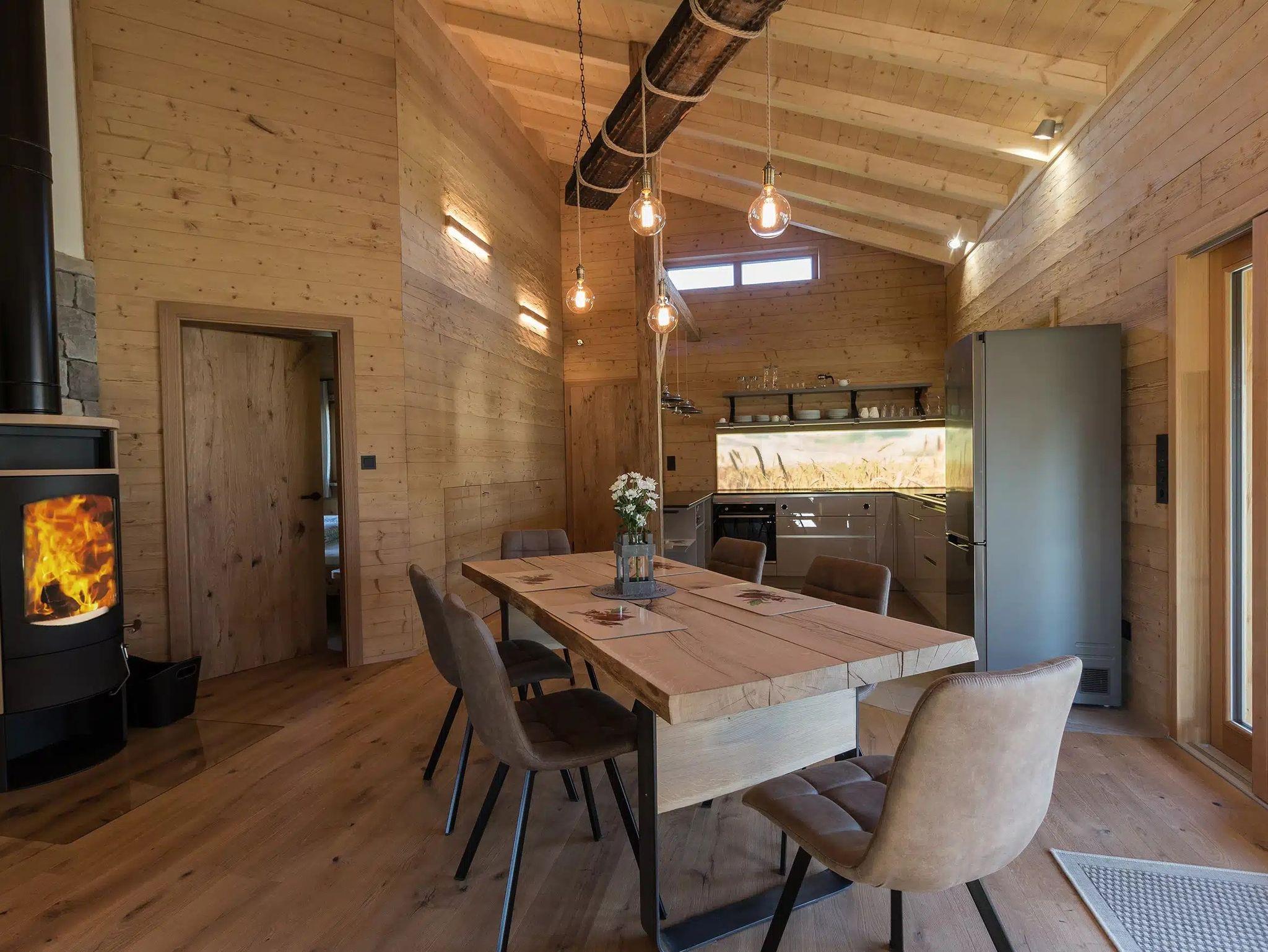 Optimale Belegung: Zwei Erwachsene und zwei Kinder (auf Wunsch kann ein drittes Kinderbett hinzugefügt werden). Auf ca. 90qm Wohnfläche erwarten euch: Zwei getrennte Schlafzimmer: Großes Elternschlafzimmer (Bett in Übergröße 200x220cm) und ein Kinderzimmer mit Stockbett (Größe der Kinderbetten oben 90x200cm, sowie unten 120x200cm), im Kinderzimmer befindet sich ein Spieleboden der über eine wegklappbare Leiter erreicht werden kann. Äußerst geräumige Wohnküche mit Sichtdachstuhl und Kaminofen sowie allen Annehmlichkeiten für einen entspannten Urlaub. Bad mit ebenerdiger Regendusche sowie Badewanne. Unverwechselbares Wohnklima aufgrund der Holzbauweise im Sommer als auch in den Wintermonten (kuschelig und warm).
