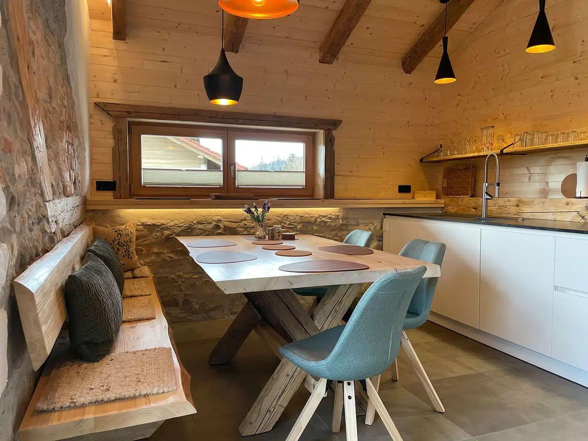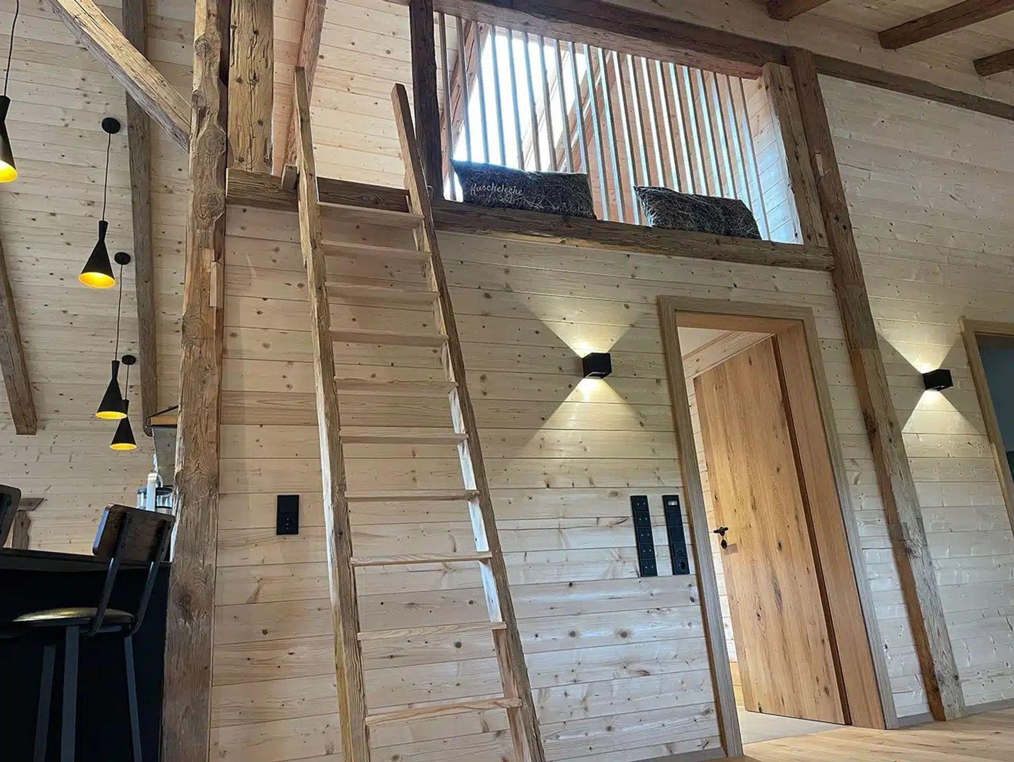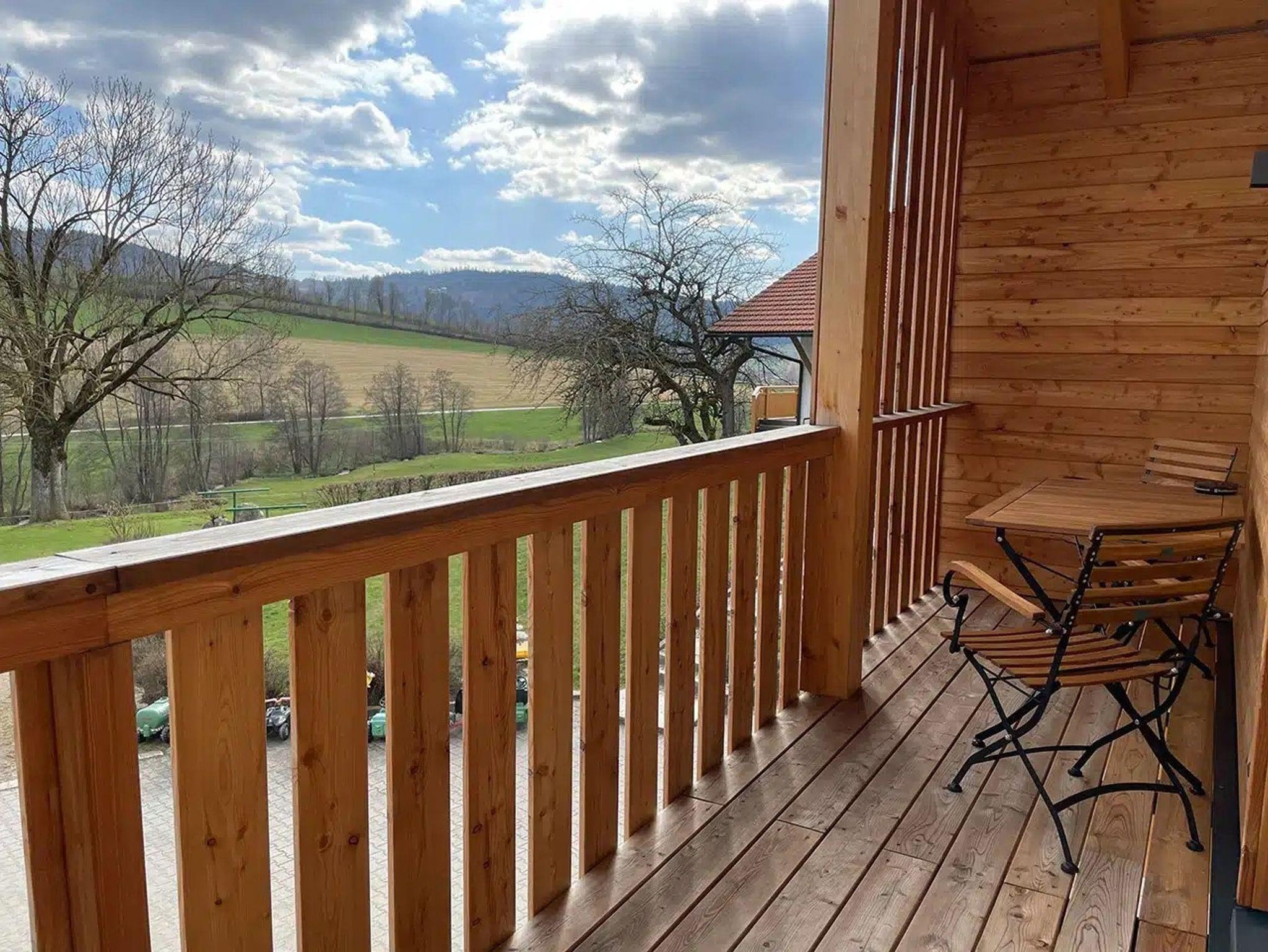 Uriges, saniertes Bauernhaus mit viel Liebe eingerichtet, eigener Eingang - 1. Stock; es befinden sich KEINE weiteren Wohneinheiten in diesem Gebäude. Ein geräumiger und überdachter Balkon in Südausrichtung überblickt den Hof und die weiten Wiesen. Die zusätzliche Terrasse davor kann zum Grillen und Relaxen genutzt werden.