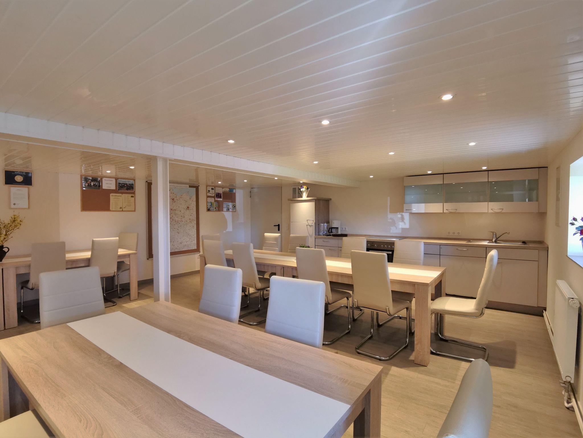 Die große Ferienwohnung verfügt über vier Schlafzimmer mit sieben Schlafplätzen und zwei großen Badezimmern sowie einer zusätzlichen Toilette und ist besonder für große Familien, mehrere Urlaubsparteien oder kleine Reisegruppen geeignet. Es gibt ein großes Schlafzimmer mit Doppelbett und Sofaecke, ein kleineres Schlafzimmer mit Doppelbett, ein Zimmer zwei Einzelbetten und ein Schlafzimmer mit einem französischen Bett für eine Person. Es können bis zu zwei Kinderbetten zugestellt werden. Weiter gibt es drei Badezimmer/Toilette: ein Badezimmer ist mit Dusche und Badewanne ausgestattet, ein weiteres Bad hat eine behindertengerechte Einrichtung (WC und zwei ebenerdige Duschen) und zusätzlich gibt es noch eine gesondertes WC. Der große, modern eingerichtete Aufenthaltsraum ist mit vielzähligen Tischen und Stühlen, einem großen Flachbild-TV und einem Kamin sowie einer großen Küchenzeile ausgestattet - hier können Sie gemeinsam ihre Mahlzeiten einnehmen, Spiele spielen und gemütlich zusammensitzen. Auf Nachfrage werden geführte Radtouren ins schöne Umland angeboten.