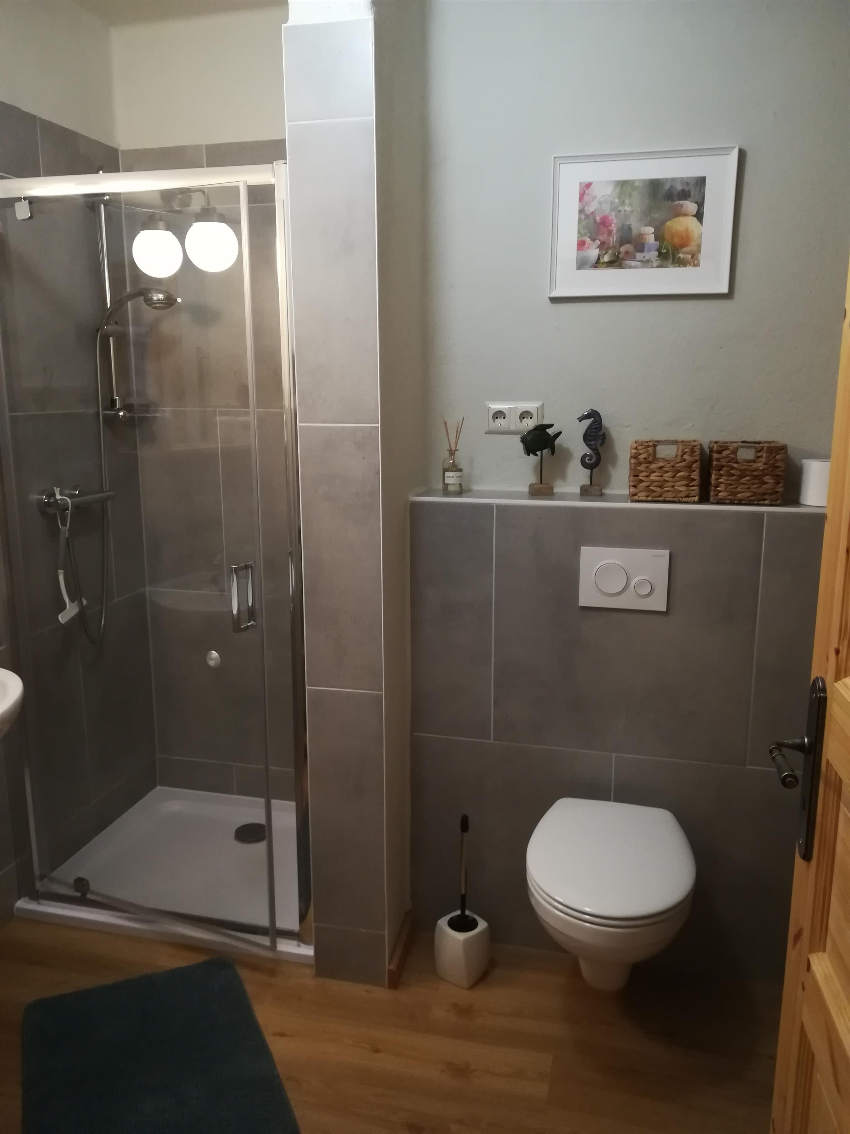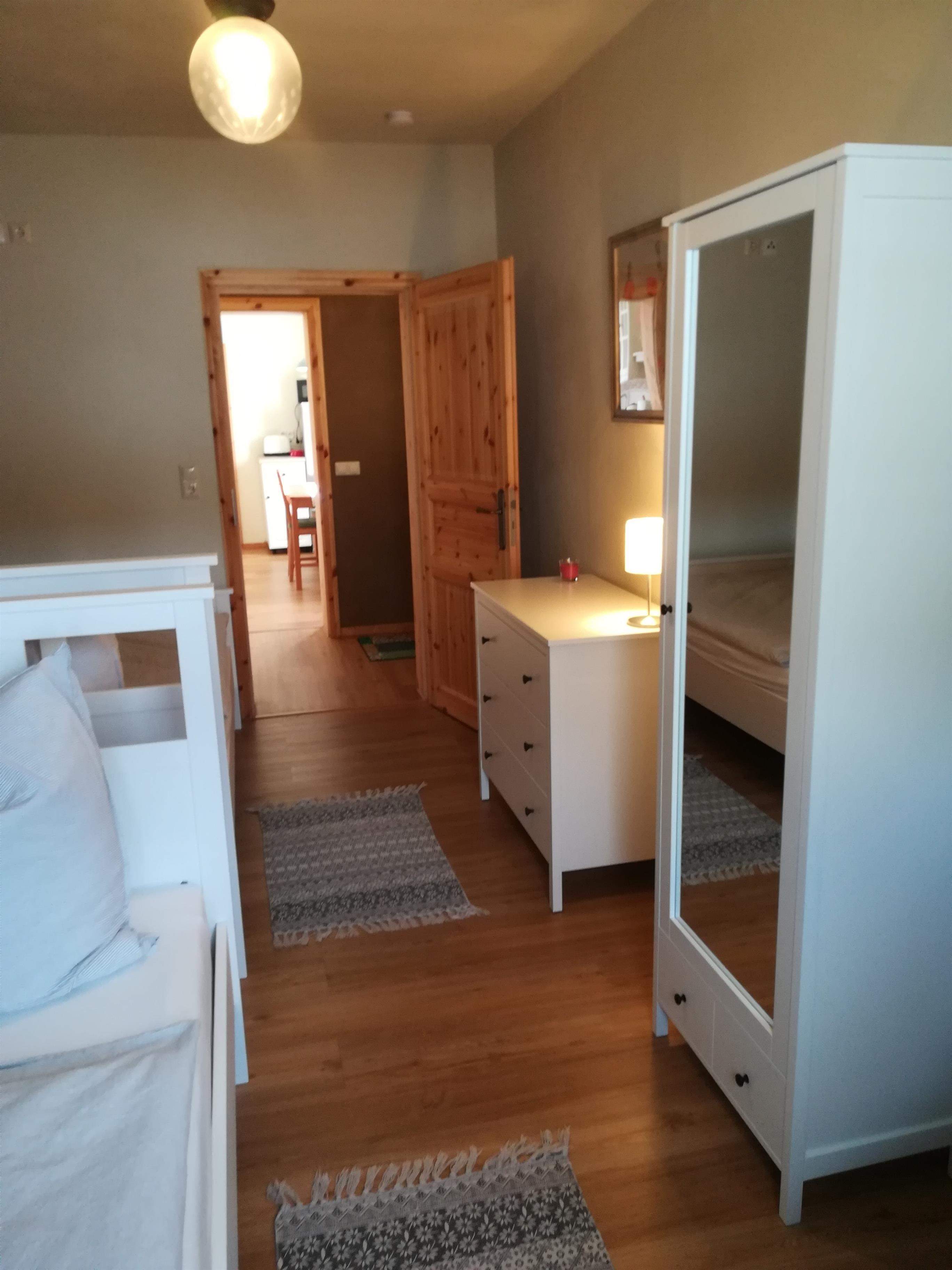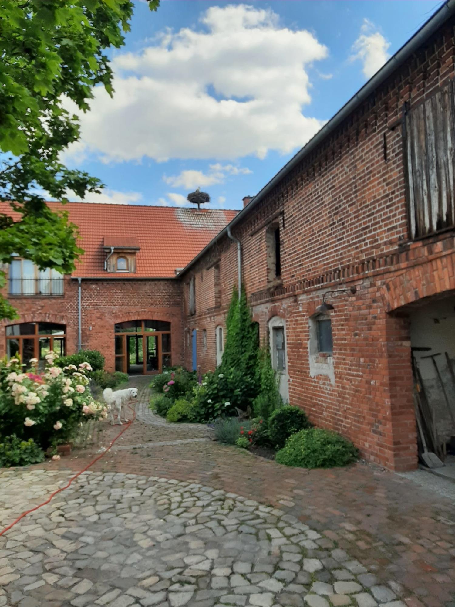 Die 52 qm große Ferienwohnung befindet sich auf einem Vierseitenhof, auf dem wir selbst wohnen, in ruhiger Lage. Die Ferienwohnung verfügt über eine gut ausgestattete Küche mit Esstisch sowie einem Bad, einem Wohn-/Schlafraum mit Doppelbett und einem Schlafzimmer mit zwei Einzelbetten. Nach Bedarf können ein Babyreisebett und eine zusätzliche Schlafliege zur Verfügung gestellt werden. Alle Wände sind mit Lehm verputzt und durch den Anstrich mit einer natürlichen Mineralfarbe gleicht der Putz die Luftfeuchtigkeit aus. Auf der Terrasse mit Sitzgelegenheit können Sie den Tag ausklingen lassen. Auf Wunsch werden ein Grill und Grillkohle bereitgestellt. Von der Ferienwohnung aus haben Sie unser Storchennest gut im Blick. Für Fahrräder haben wir eine Einstellmöglichkeit. Ganz stolz sind wir auf unseren Spielplatz im Dorf, der von unseren kleinen Gästen unbedingt ausprobiert werden sollte.