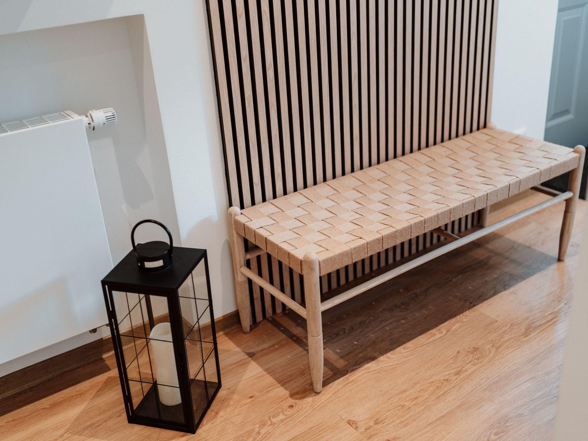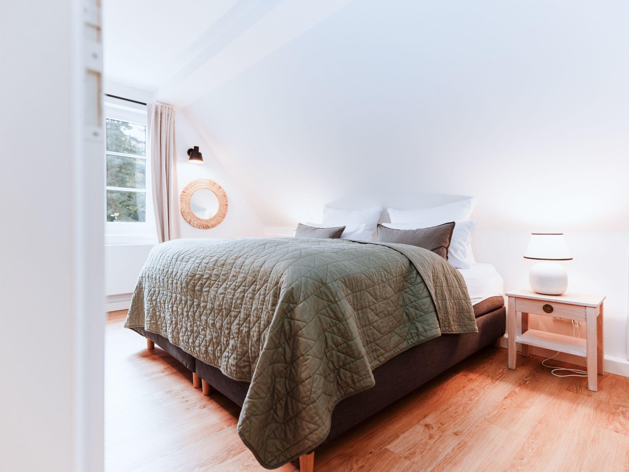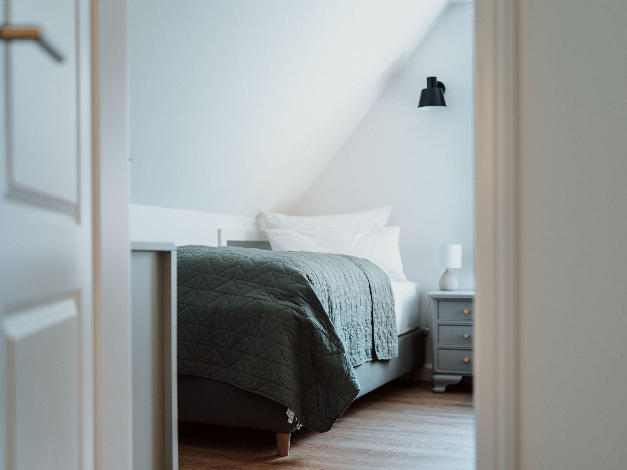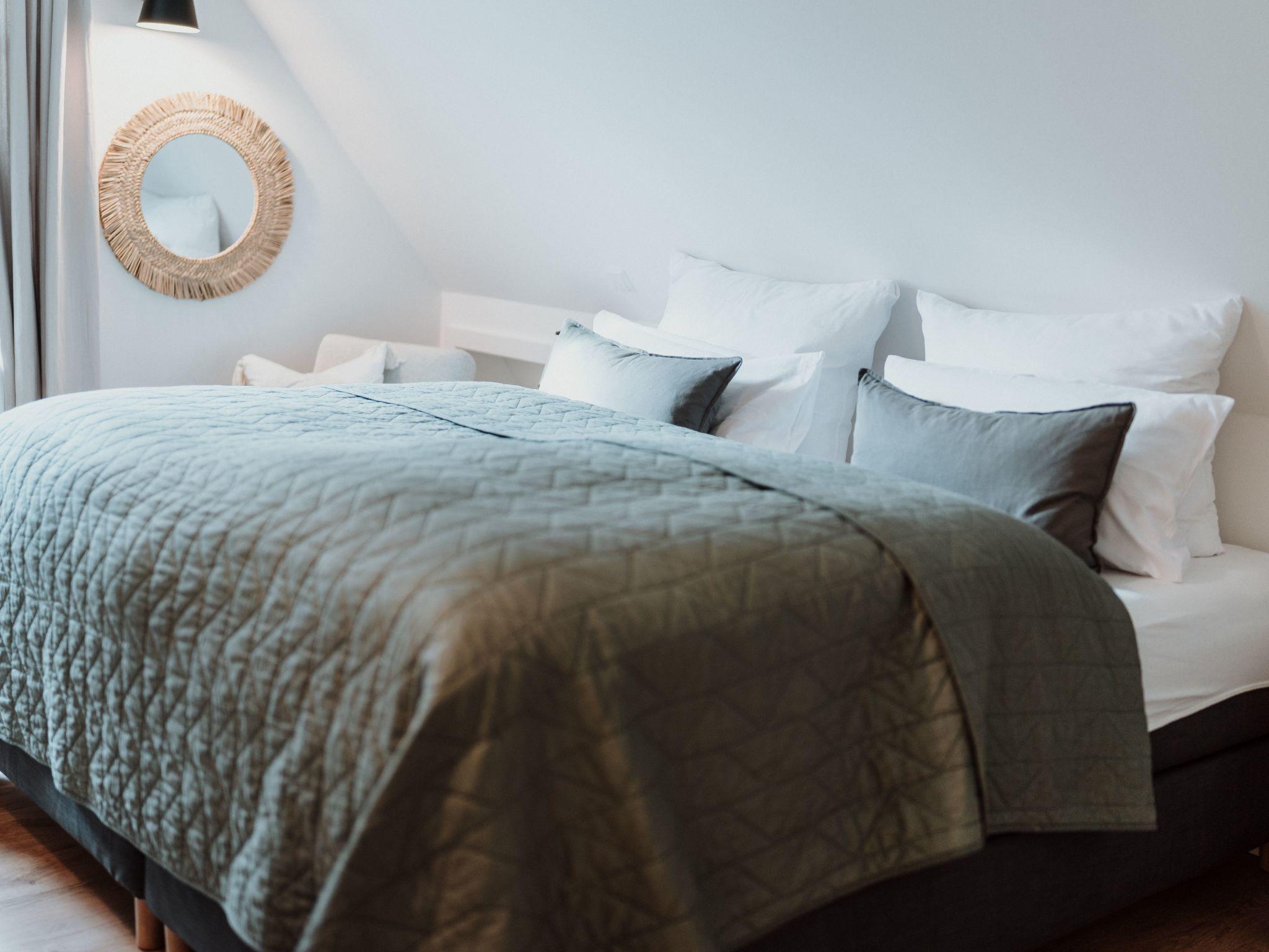 The main house has 2 bedrooms with comfortable box-spring beds for 4 people (1 x 180 cm, 2 x 90 cm), and the sofa bed in the living room can also be pulled out (please note: the room cannot be darkened!) The two bathrooms each have a large walk-in rain shower and underfloor heating, and the open-plan kitchen/living room can be used for cooking on a 4-burner induction hob. Dishwasher, fridge with small freezer compartment are also available.