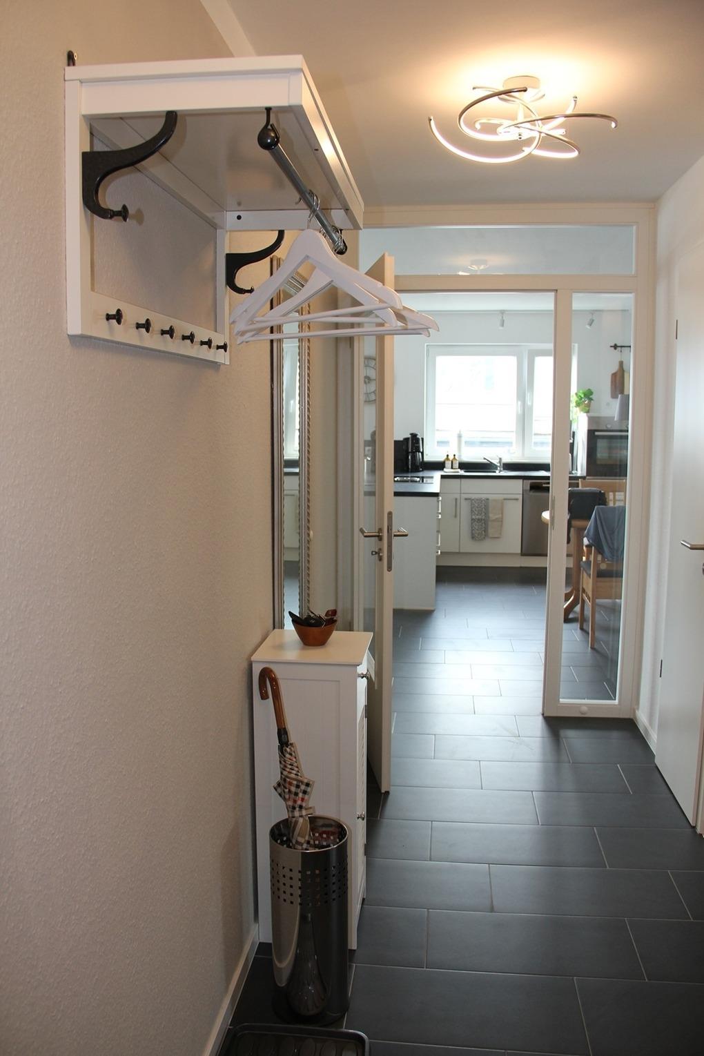 Die Küche ist modern ausgestattet, unter anderem mit einer sehr leisen Spülmaschine und einem Bora-Cerankochfeld. Geschirr, Gläser und Kochgeschirr sind für vier Personen reichlich vorhanden. Im angrenzenden Hauswirtschaftsraum finden Sie einen Wäscheständer, ein Bügelbrett, ein Bügeleisen und einen Staubsauger.