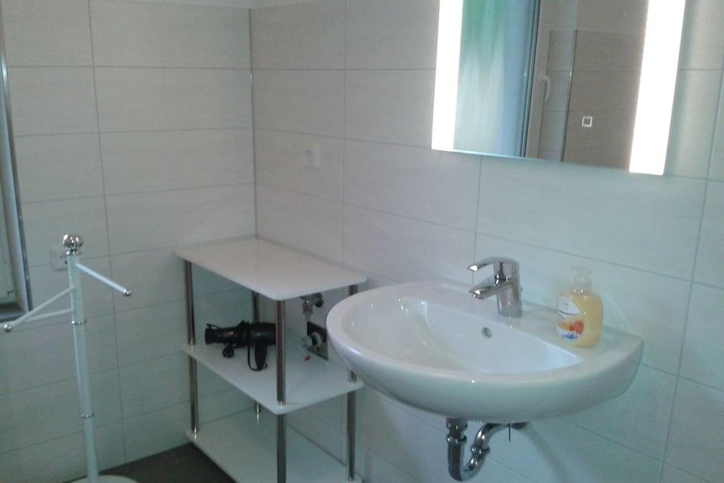 Ferielejligheden i vores feriehus, nybygget i 2016, ligger direkte på badeplænen ved Grimnitz-søen. Lejligheden er tilgængelig for kørestolsbrugere, og stien fra parkeringspladsen til søen er også handicapvenlig. Den komfortabelt møblerede lejlighed har to soveværelser, et med en boxmadras og det andet med to enkeltsenge, et brusebad og et rummeligt spisekøkken med keramisk kogeplade, opvaskemaskine, køleskab, miniovn, elkedel og alt nødvendigt service og redskaber. Efter anmodning kan vi stille en brusestol til rådighed for vores gæster. Huset ligger på en indhegnet grund med bord og stole udenfor samt en grill. Der er en privat parkeringsplads til rådighed for din bil foran ejendommen.