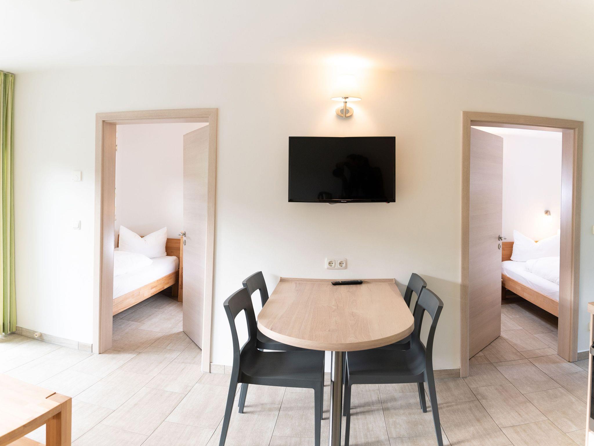 Das Elternschlafzimmer bietet dir ein 140x200 cm großen Bett und einen geräumigen Kleiderschrank (150 cm) für deine Urlaubsgarderobe. Wir möchten darauf hinweisen, dass das Bett, Wand an Wand steht und daher das einsteigen für manch einen schwierig werden könnte. Für Kinder stehen in einem weiteren Zimmer zwei Betten 90x200 cm und eine Kommode (90 cm) bereit. Die Betten sind für dich bezogen.
