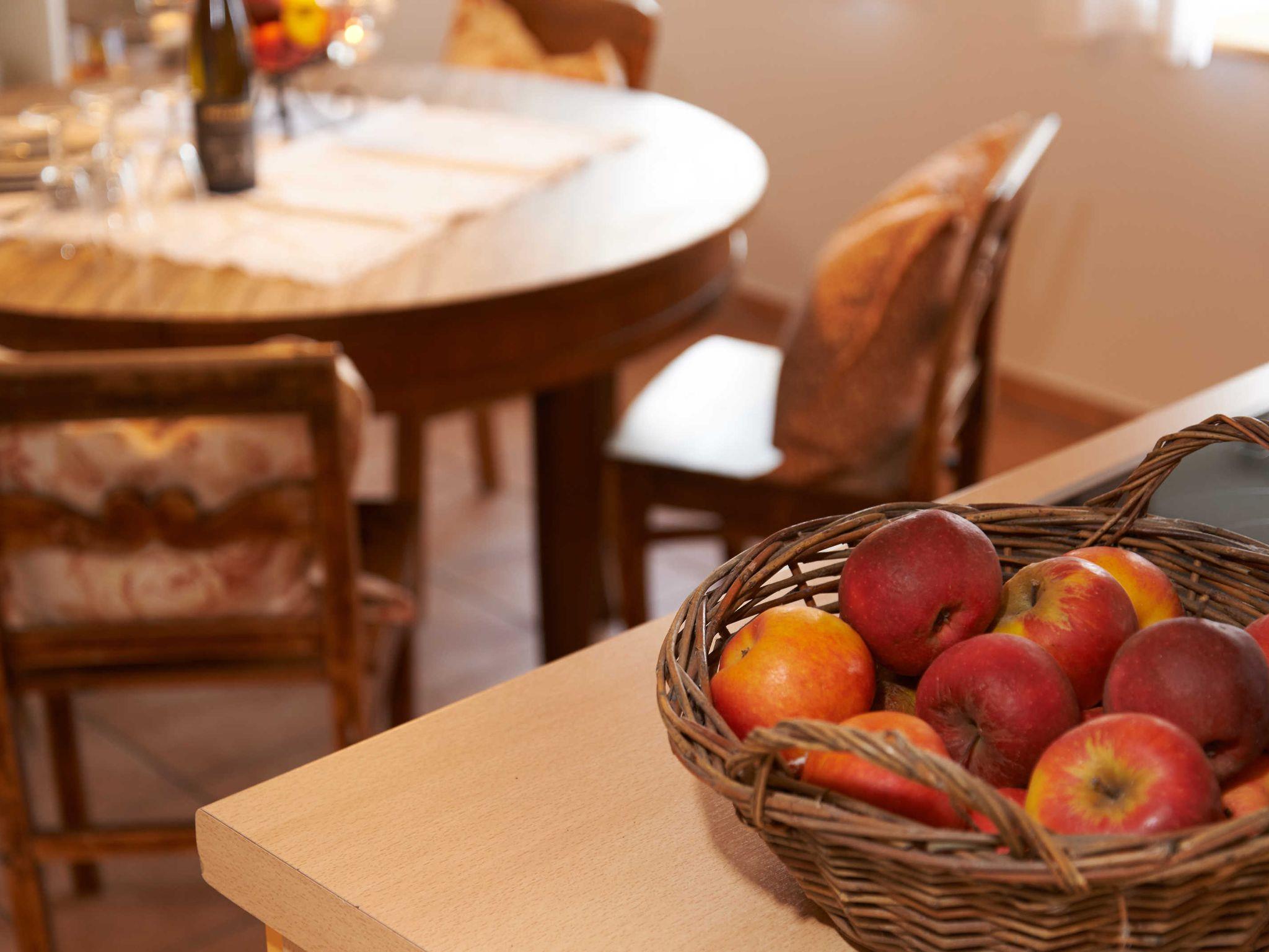 Die Ferienwohnung ist für max. 4 Personen geeignet und ist Allergikerfreundlich. Mit viel Liebe zum Detail, gemütlich und mit schönen Möbeln haben wir die Wohnung Jona Gold eingerichtet. Die Wohnung ist baubiologisch saniert und aus allen Fenstern haben Sie einen sehr schönen Ausblick. Zur Wohnung gehört ein gemütlicher eigener Sitzplatz im Garten mit Gartenmöbeln für schöne Stunden am Tag oder einem lauschigen Sommerabend unter freiem Himmel. Erholen Sie sich bei uns und genießen Sie Ihren Urlaub in unserem 300 Jahre alten Bauernhaus.