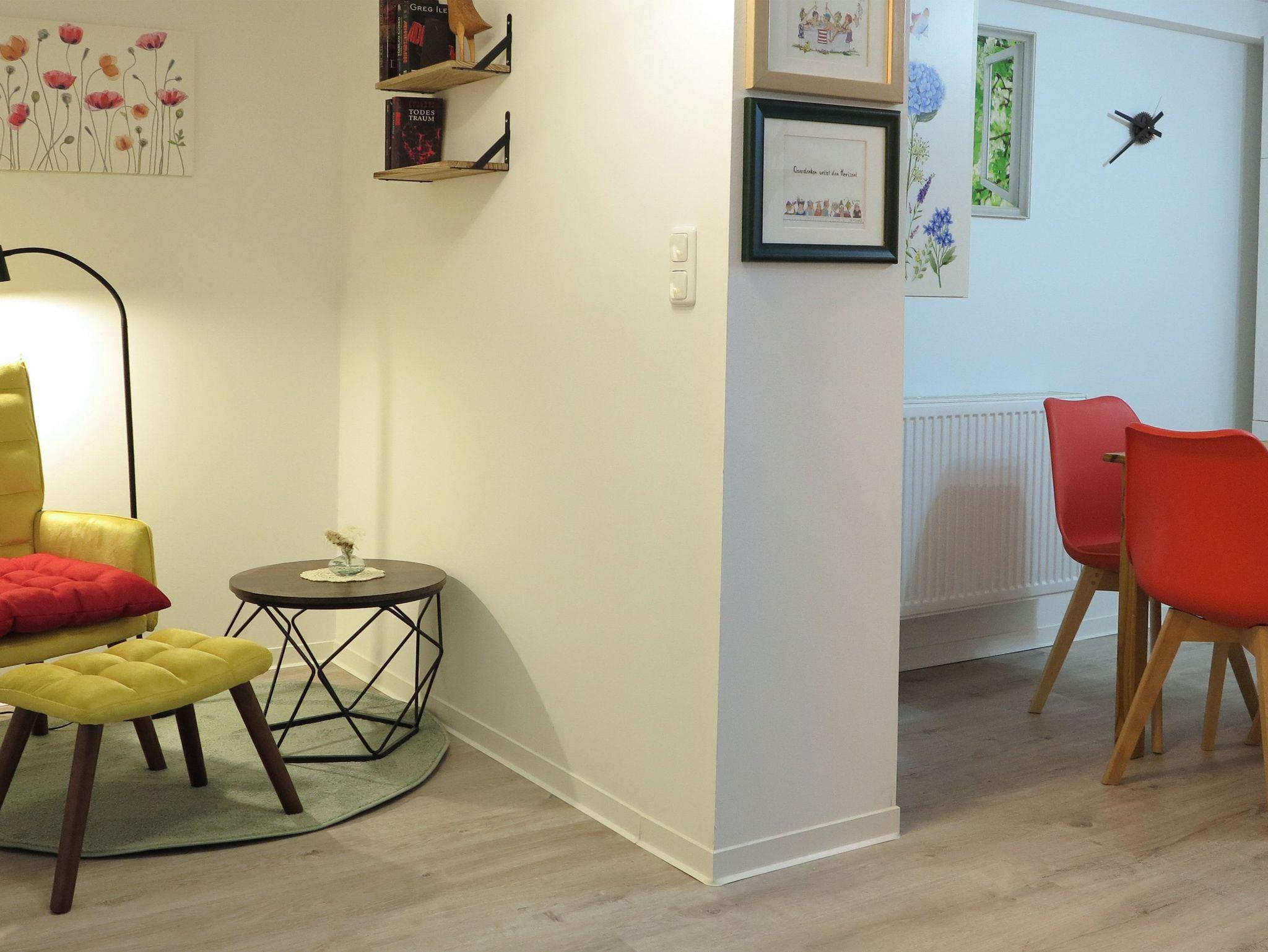 Wir raten auch an, Hausschuhe mitzubringen. Der Fußboden ist in der ganzen Wohnung mit einem modernen unempfindlichen Boden ausgelegt, und vor den Betten haben wir jeweils einen warmen Teppich platziert - aber es bleibt ein Keller/Souterrain. Für den Notfall haben wir allerdings auch Hausschuhe vor Ort.