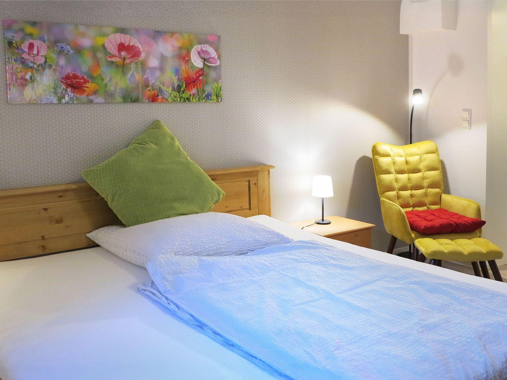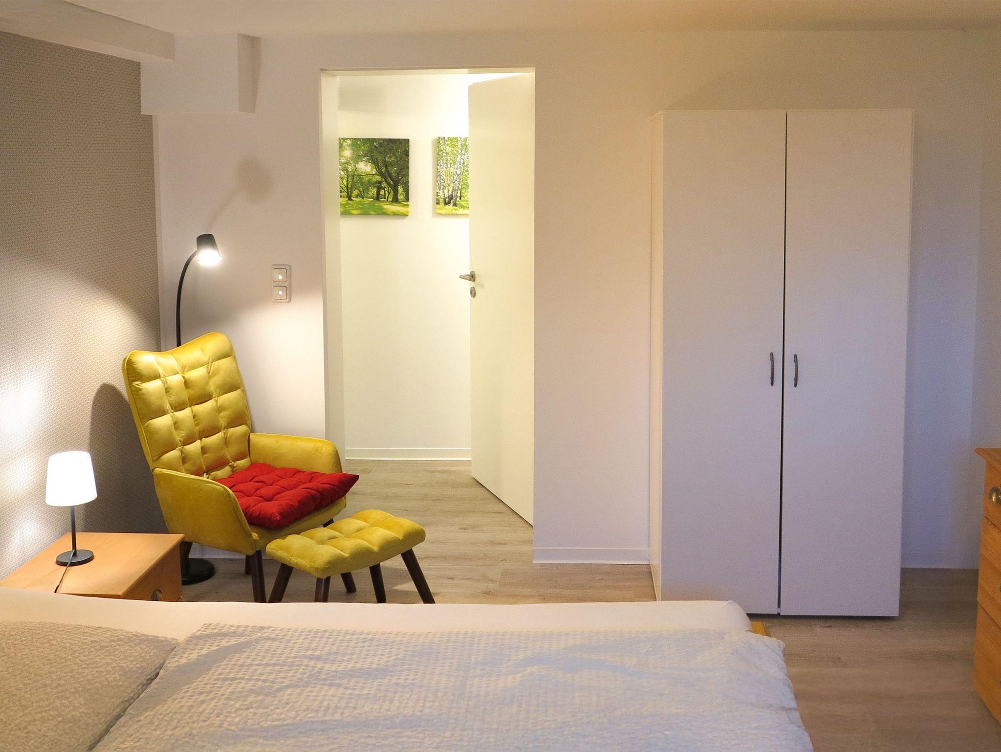 2 Schlafzimmer erwarten dich momentan - eines mit einem Einzelbett und eines mit einem Doppelbett. In jedem Schlafzimmer befindet sich ein Kleiderschrank und ein Fernseher mit Satelitenempfang. In dem kleinen Schlafzimmern bietet ein kleiner ausgestatteter Schreibtisch mit Stuhl, im großen Schlafzimmer ein kleiner Sessel zusätzliche Möglichkeiten für Arbeit und Entspannung.