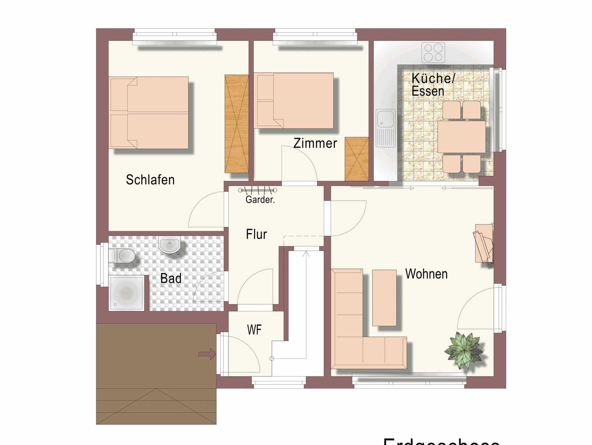 Es erwartet Sie eine gemütliche und liebevoll eingerichtete 2-Zimmer-Ferienwohnung. Die Wohnung ist mit einer voll eingerichteten