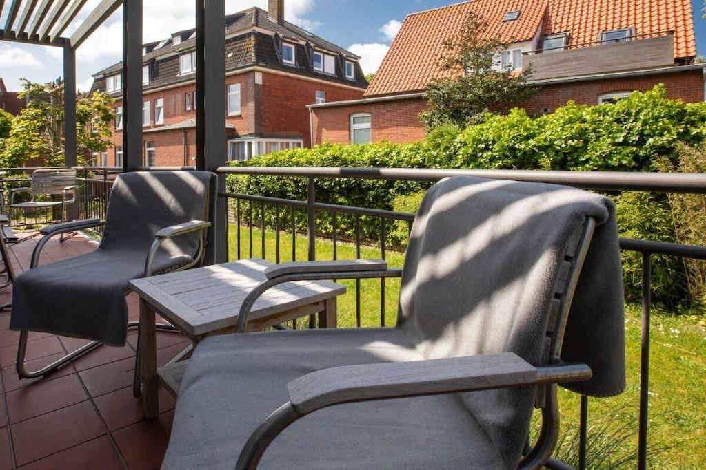 Spacious and stylish - apartment "No. 14" on Juist. Perfect location! Directly at the beach entrance and Januspark - 6 people, fireplace, balcony and garden.