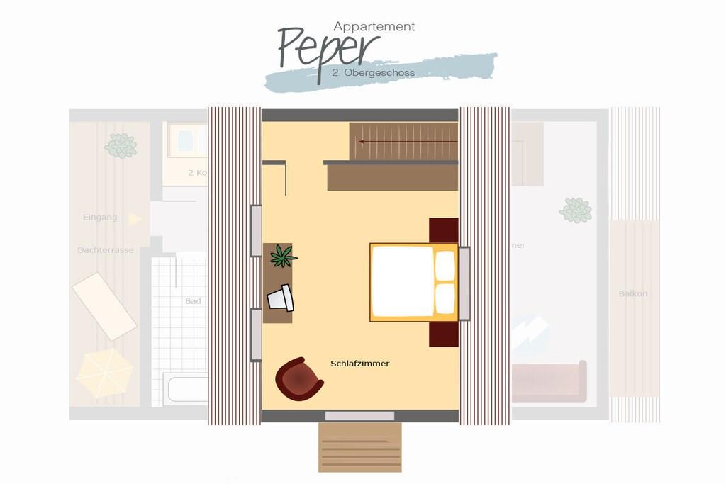 Sie wohnen in unseren rauchfreien Appartements auf zwei Ebenen in der 1. und 2. Etage mit allem Komfort, den Sie sich im Urlaub wünschen. Das Wohnzimmer unten ist mit Radio-CD-Player, Flachbildschirm-TV ausgestattet. Im Schlafzimmer unterm Spitzdach steht ebenfalls ein Fernseher. Ost- und Westfenster lassen Morgen- und Abendsonne herein. Außerdem gibt es: Eine komplette Studioküche mit Mikrowelle, Wasserkocher, Kaffeemaschine, Toaster und Spülmaschine. Badezimmer mit Dusche oder Wanne, WC, Haarfön und Kosmetikspiegel. Zwei zusätzliche ostfriesische Schlafkojen in Form eines Etagenbettes. Waschmaschine, Trockner, Bügeleisen und Bügelbrett. Bettwäsche und Handtücher inklusive. Kürzere Aufenthalte und Rabatte sind in freien Restzeiträumen oder bei kurzfristigen Anfragen möglich.
