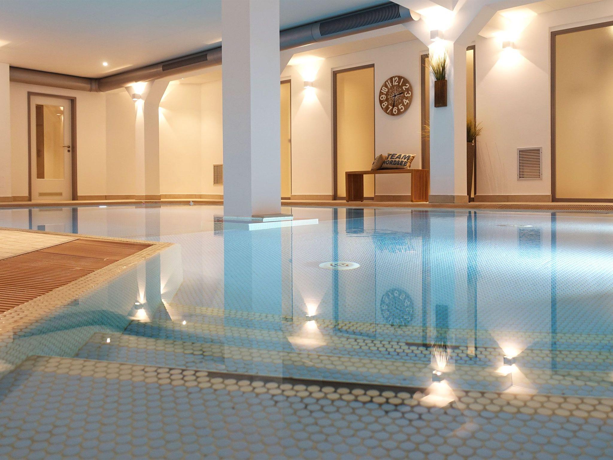 Genießen Sie den hauseigenen Wellnessbereich mit Schwimmbad und Sauna. Hier lassen sich auch trübe Trage voller Entspannung verbringen.