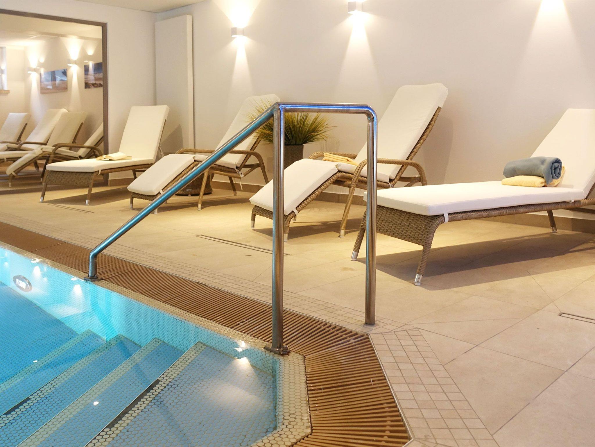 Der Schwimbadbereich und die Sauna sind ebenfalls mit dem Lift zu erreichen und stehen Ihnen kostenfrei zur Verfügung.