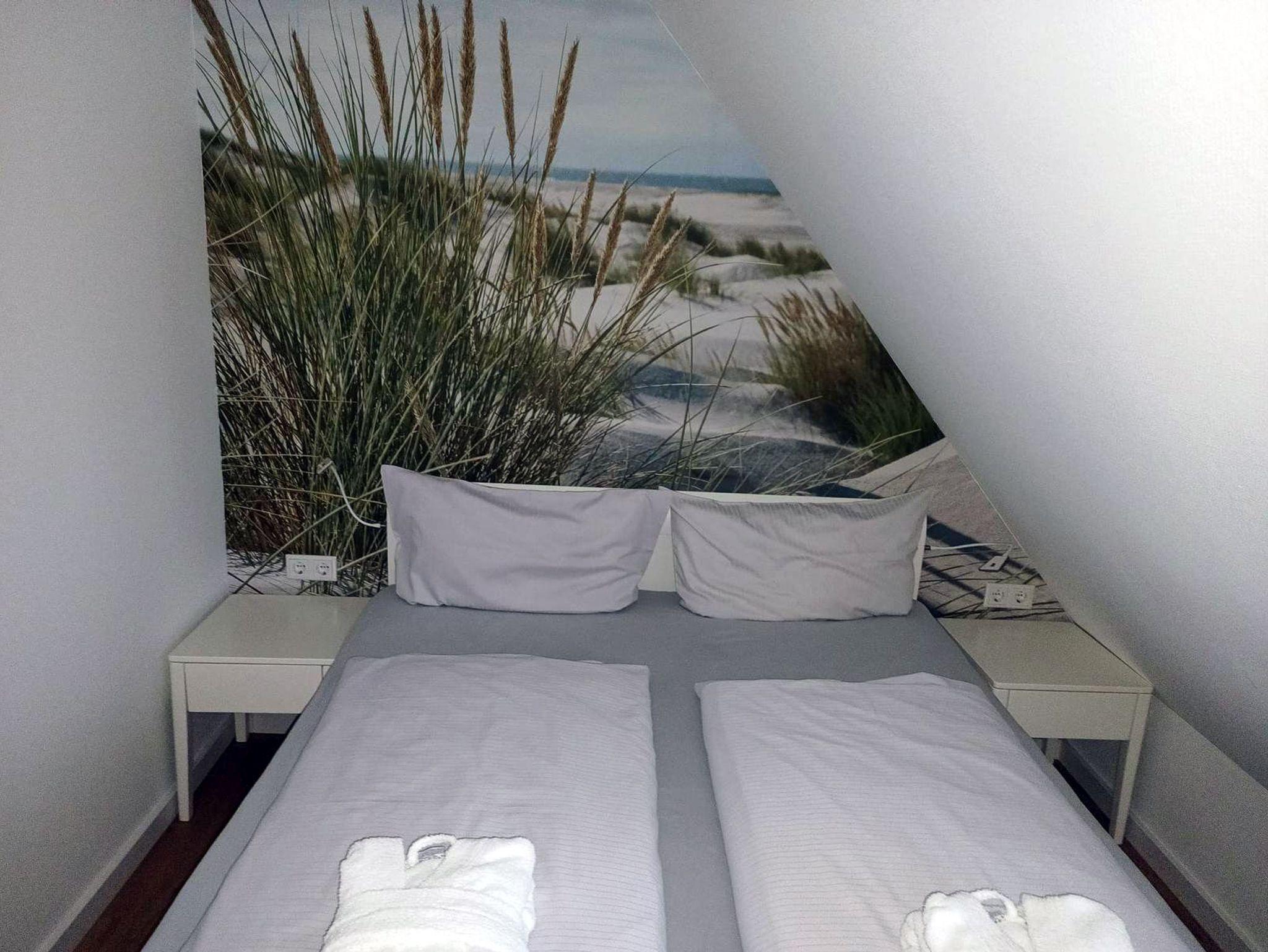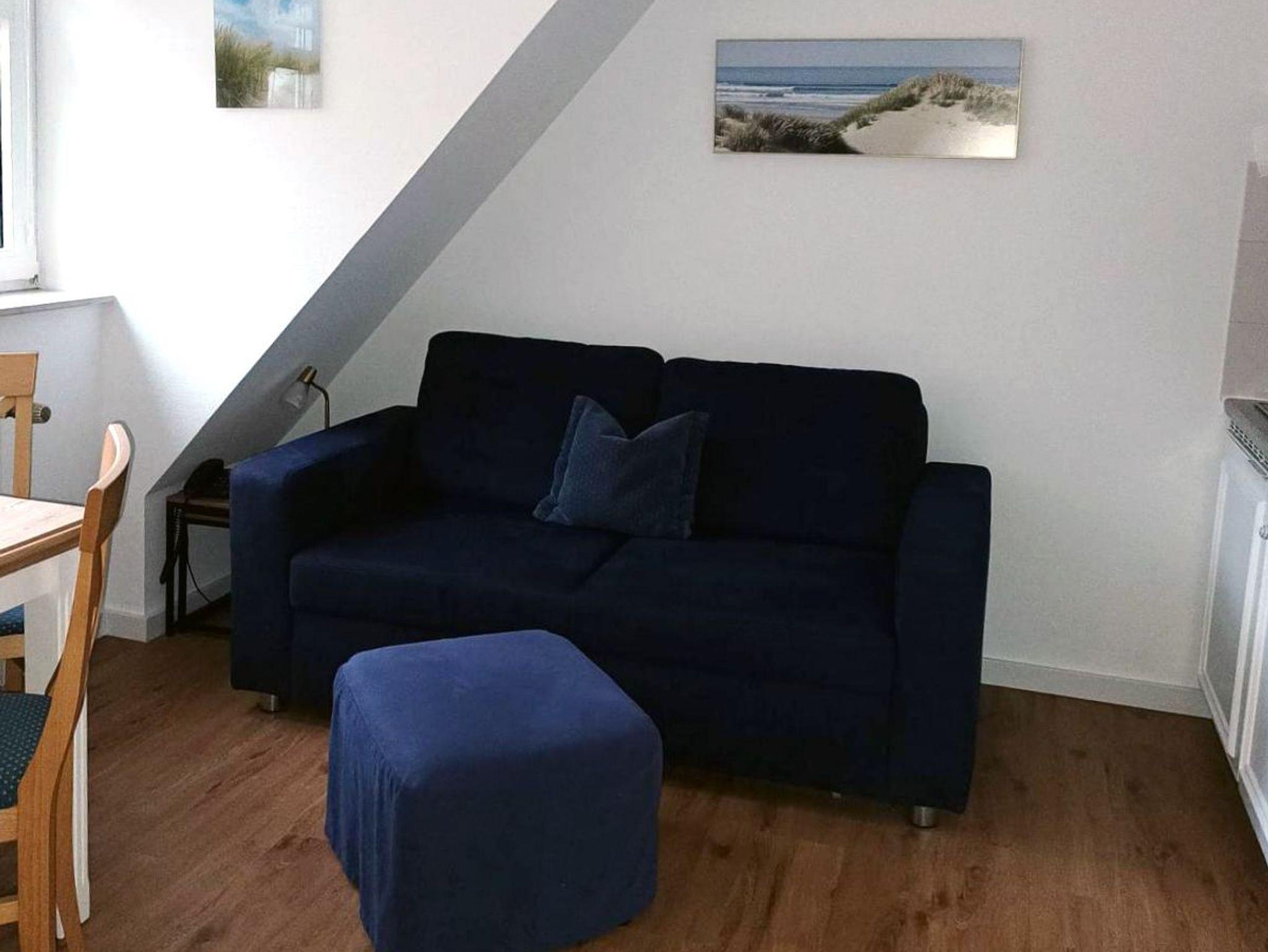 Gemütliche, kleine Ferienwohnung für 2 Personen in der 3. Etage der Inselresidenz Strandburg. Die Wohnung besteht aus einem kombinierten Wohn-/Schlafbereich mit optisch getrenntem Schlafbereich (Doppelbett 1,60 x 2,00 m) sowie einer Pantryküche und einem Duschbad. Die Pantryküche ist mit 2-Platten-Herd, Kühlschrank, Kaffeemaschine, Wasserkocher und Toaster ausgestattet. Ein Essplatz befindet sich im Wohnraum ebenso eine Couch.